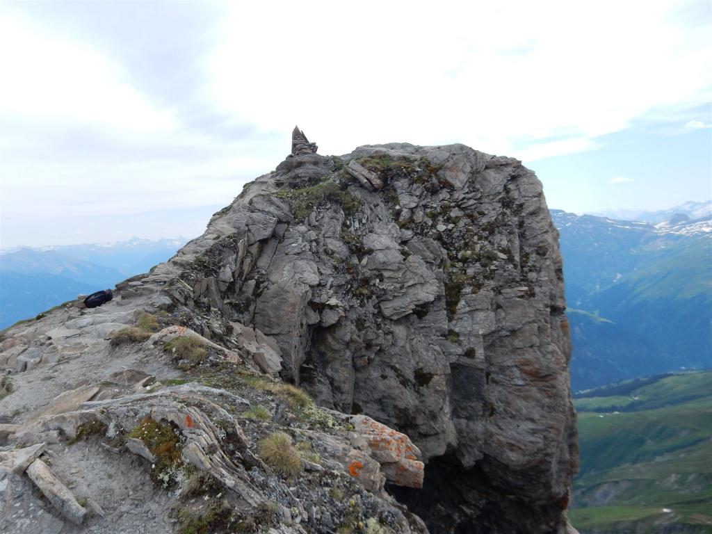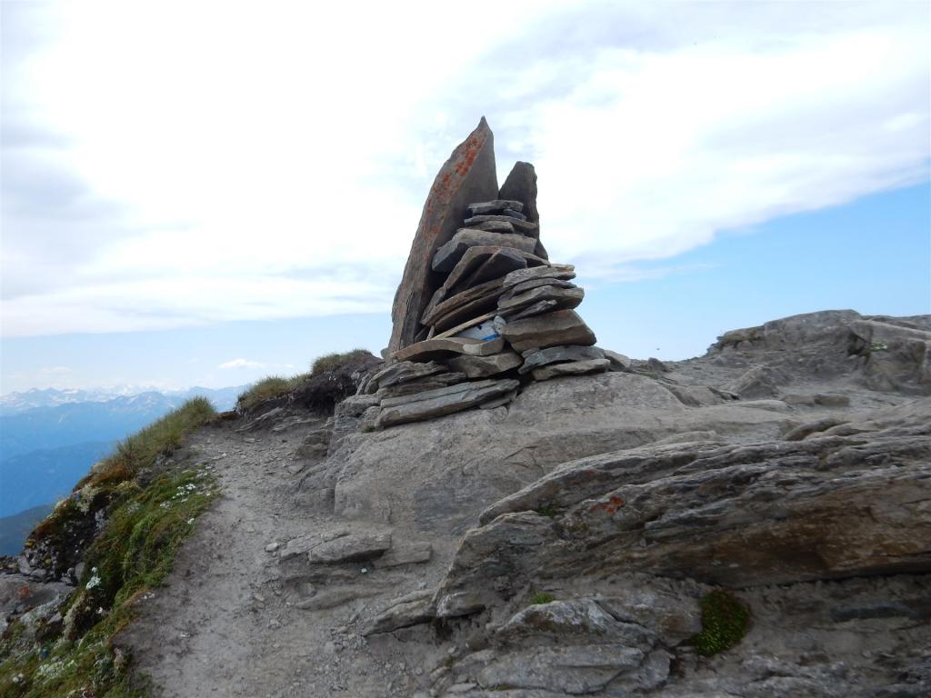 Spezielles Gipfel-Steinmännchen auf dem Piz Fess