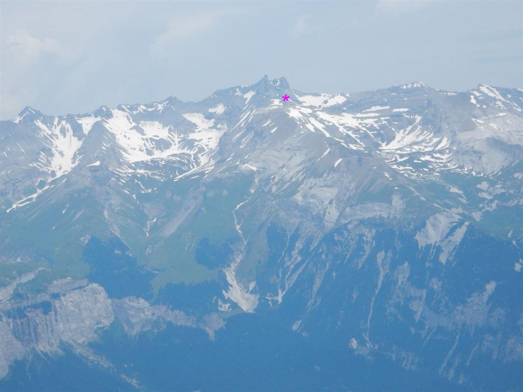 Blick auf Ringelspitz und mein Platz (Sternchen) auf dem Piz Tschep vor einer Woche