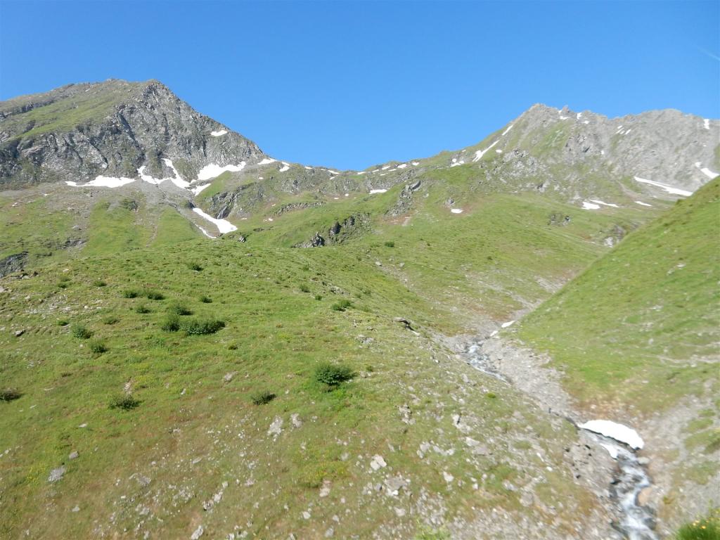 Im Abstieg bei der Tällihütte, Blick zurück auf Auf-/Abstiegsroute