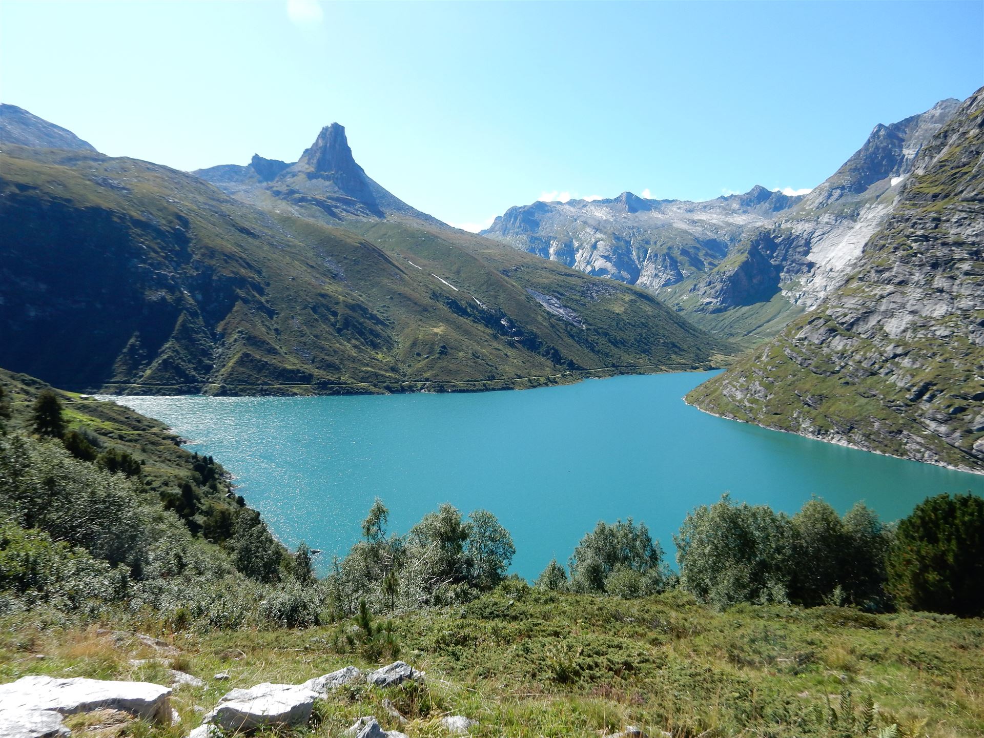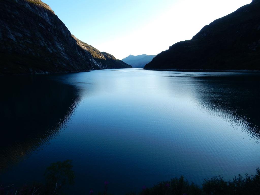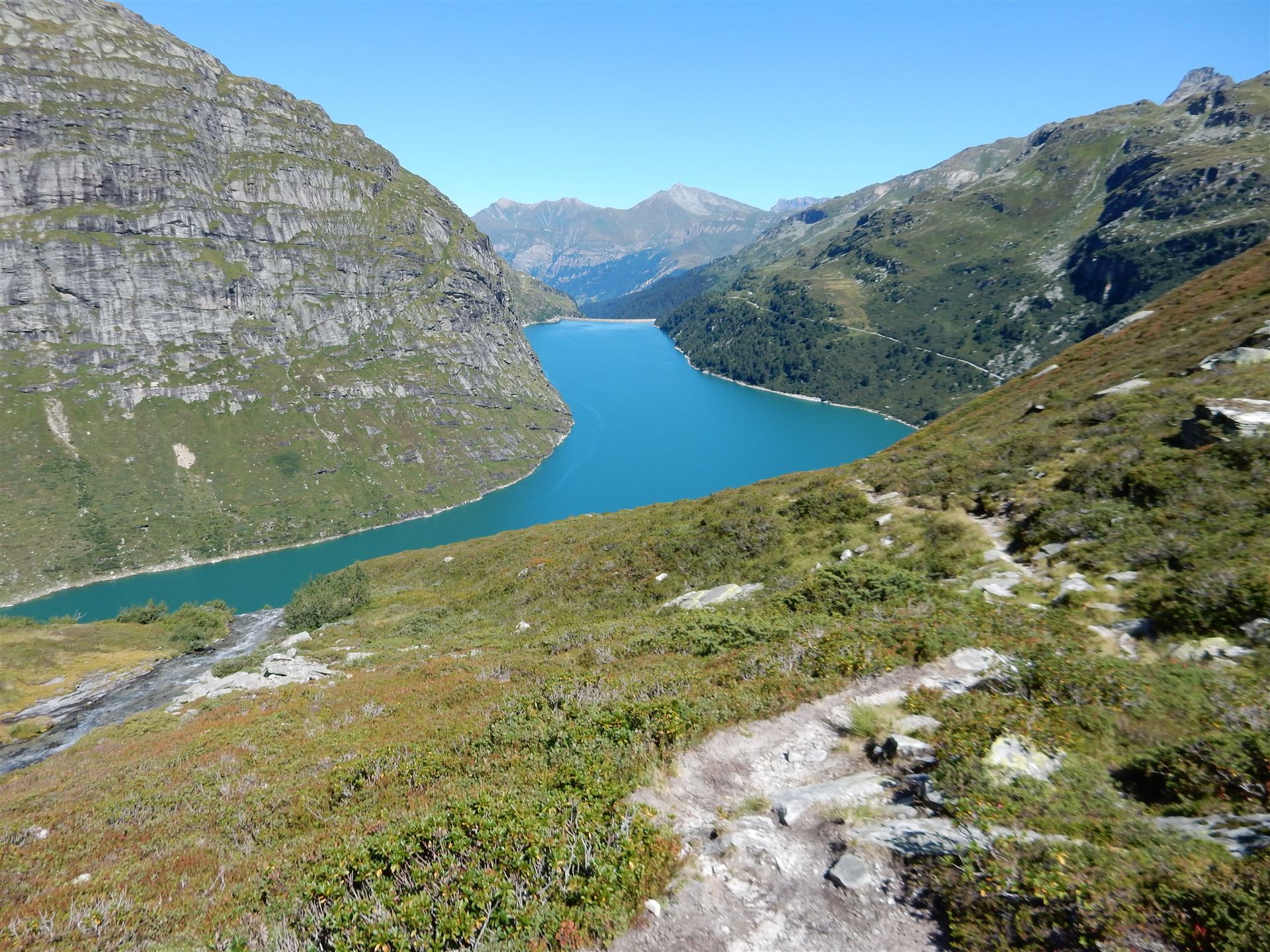 Kurz vor Ende der Tour, Blick auf Zervreilasee und Zervreilahorn