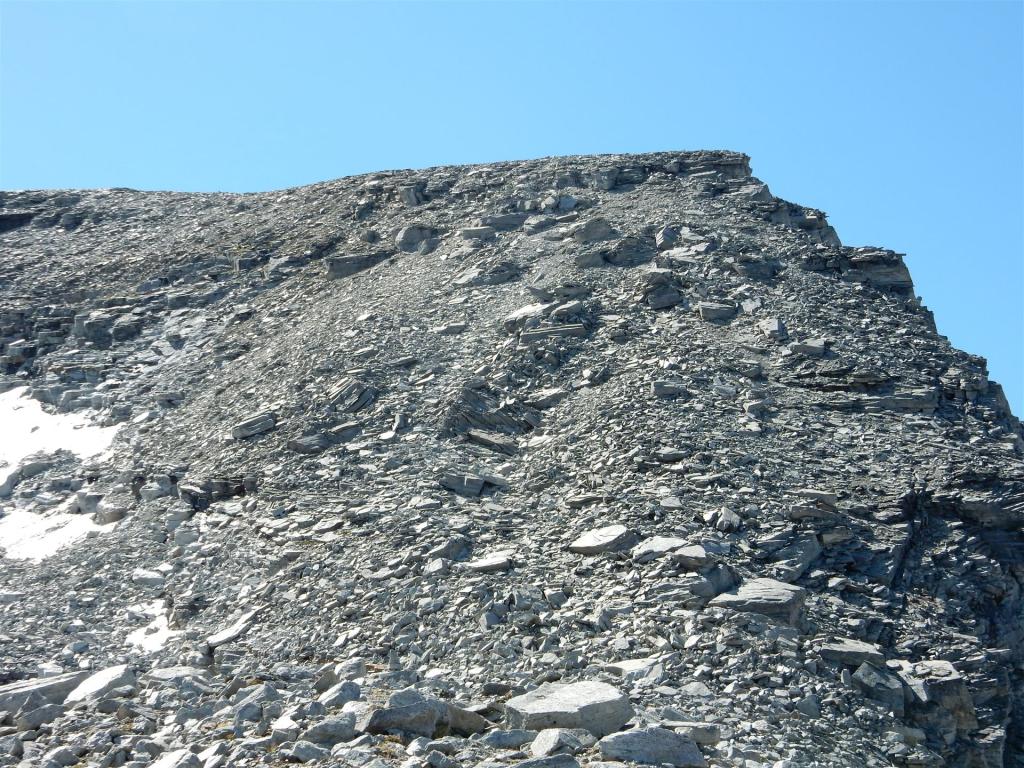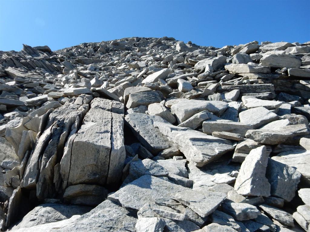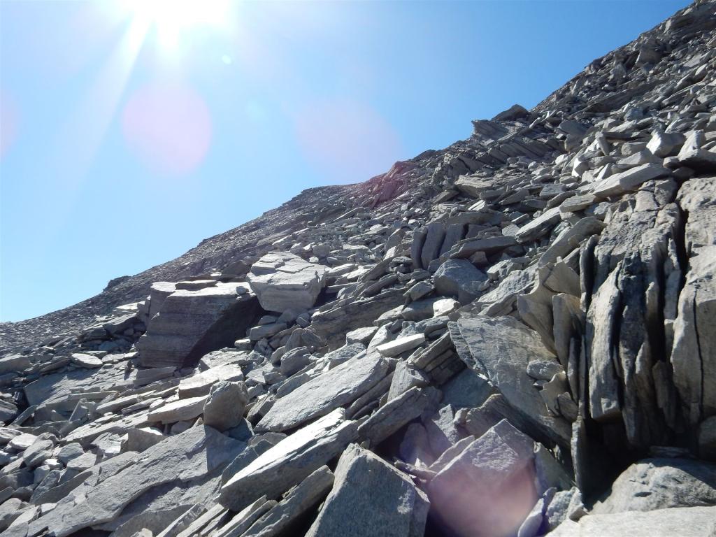 Das Problem war, dass der Hang nur aus gröberen Steinbrocken bestand, die grösstenteils lose und wackelig waren. Das machte ein Vorwärtskommen mühsam und ich hatte Schwierigkeiten zu entscheiden, wo ich weitergehen sollte.