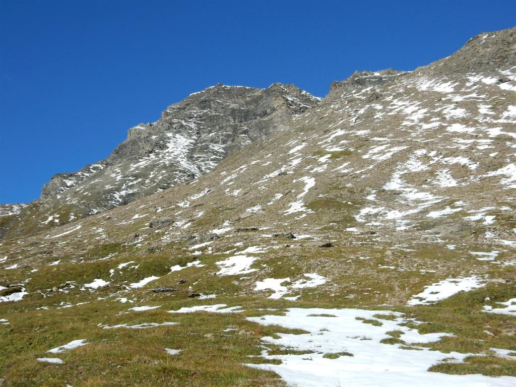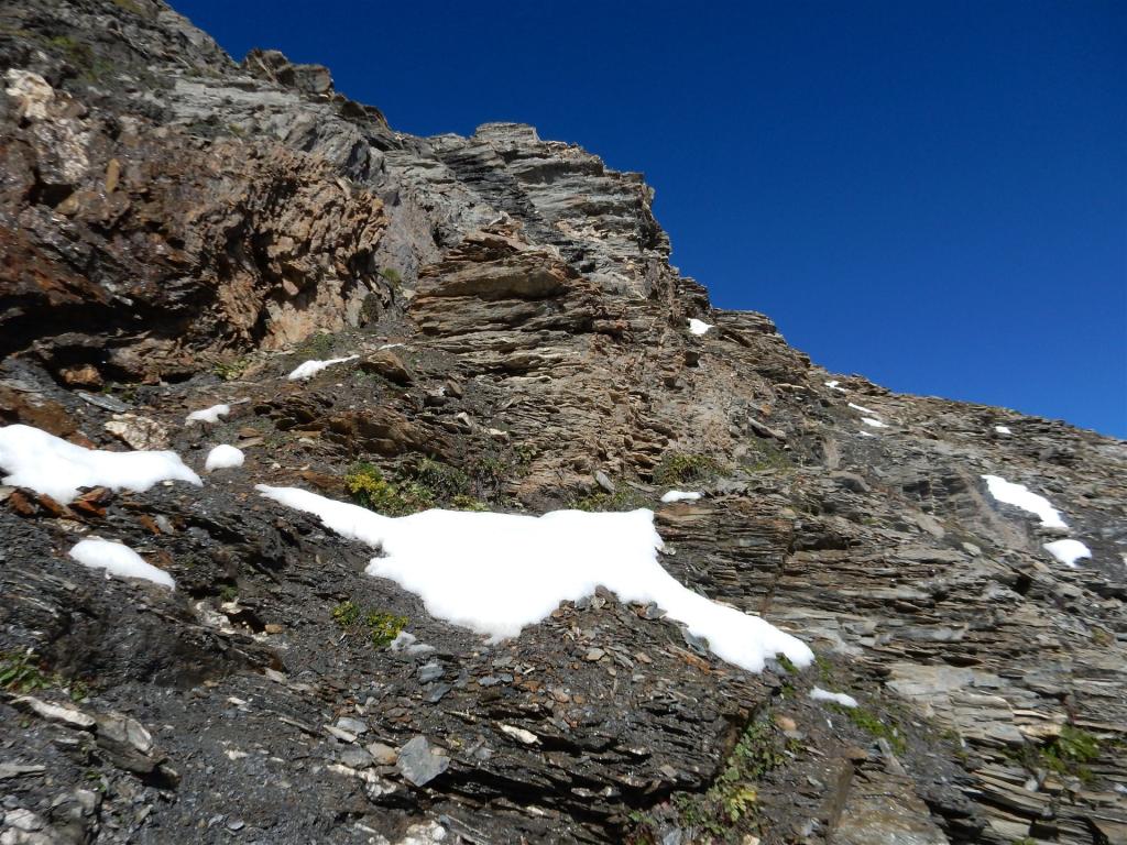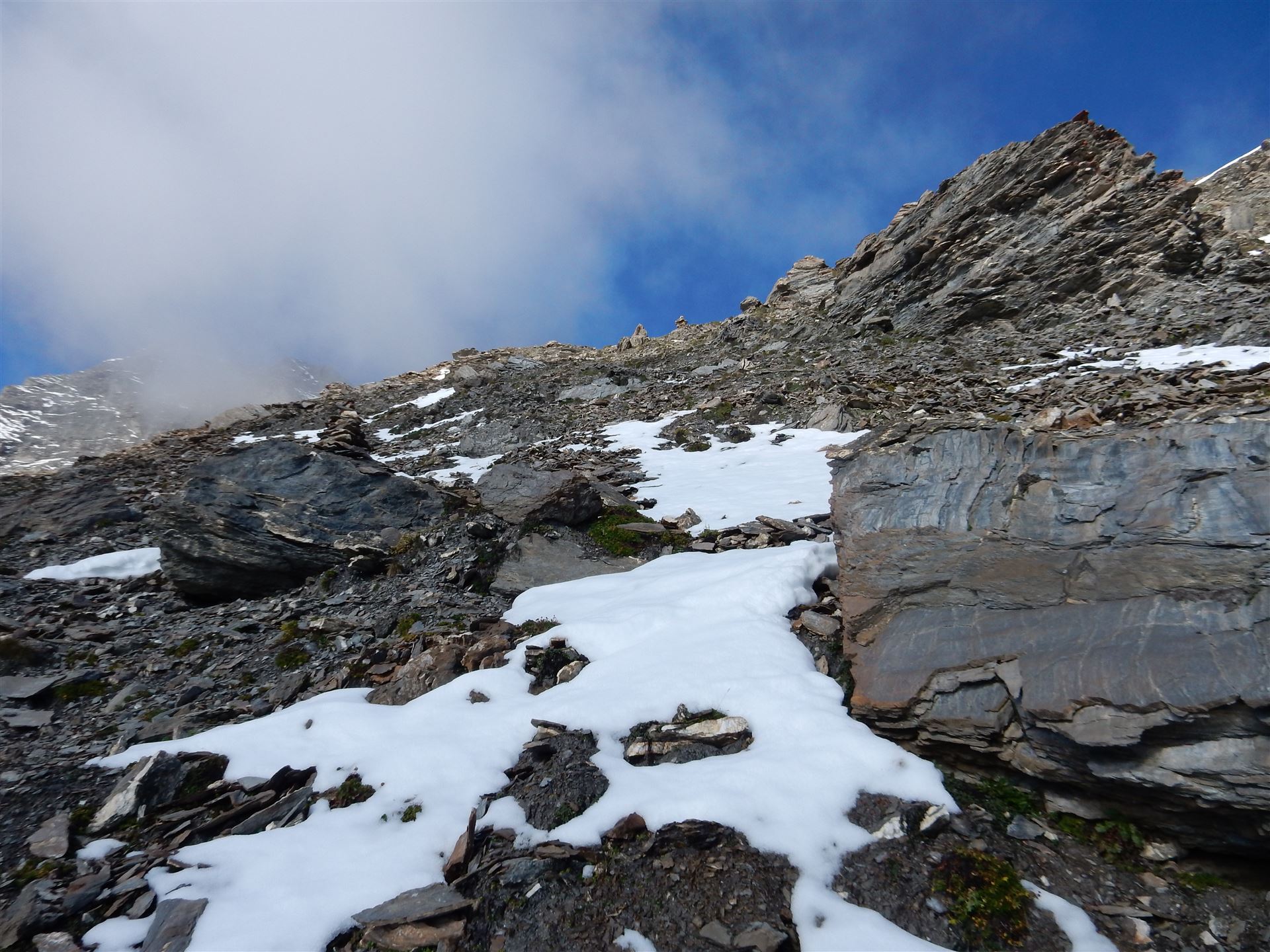 Bei ca. 2600m mit ein wenig Schnee nach dem besten Weg suchend