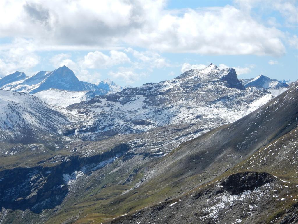Auf dem Nordgratsattel, Blick mit Zoom auf Piz d'Err, Piz Calderas