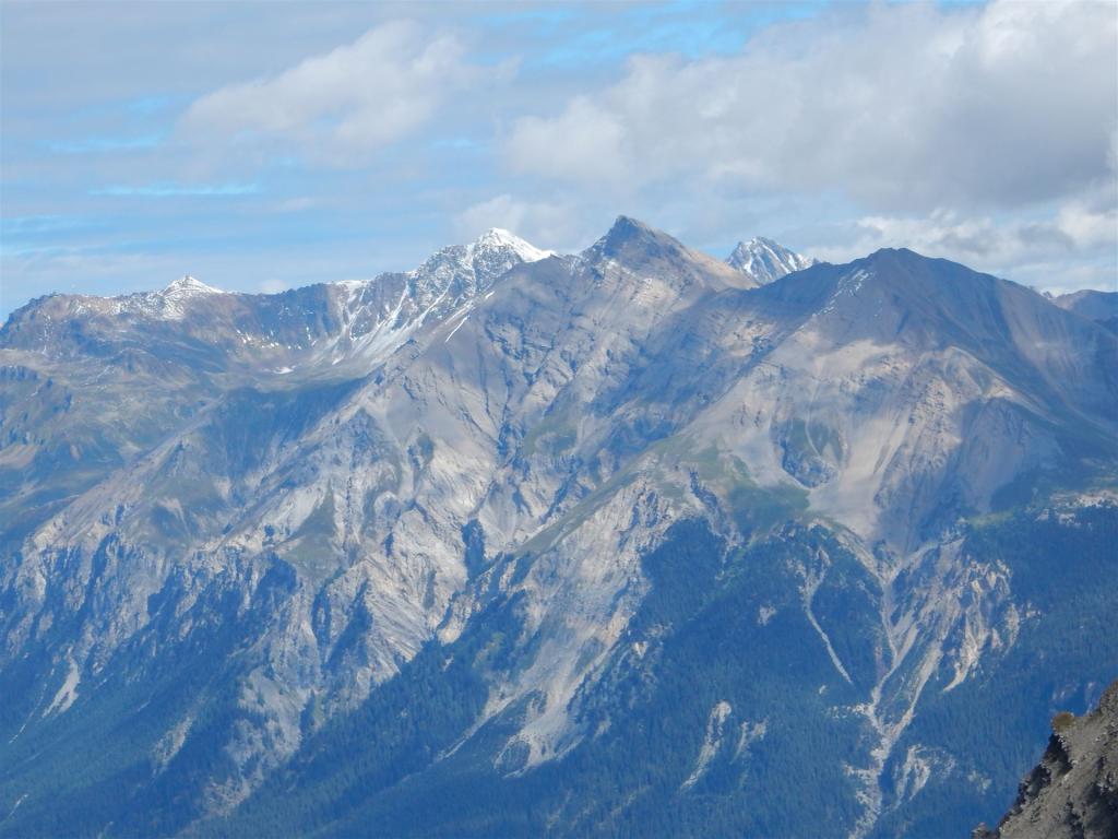 Auf dem Nordgratsattel, Blick mit Zoom auf Piz d'Err, Piz Calderas, Tschima da Flix