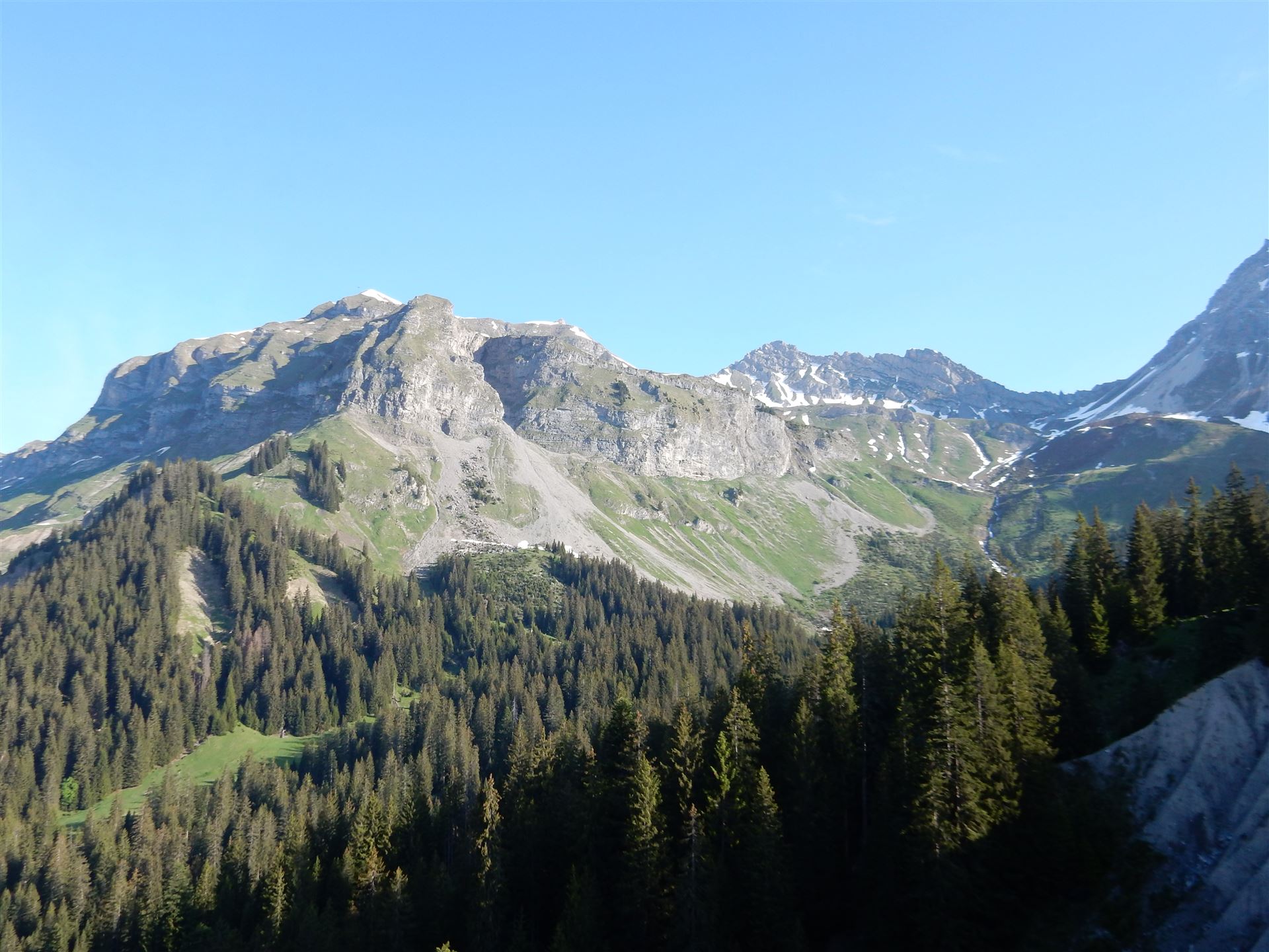 Bei 1620m, morgendlicher Blick auf Tschingel und Chlei Furgga (ganz rechts)