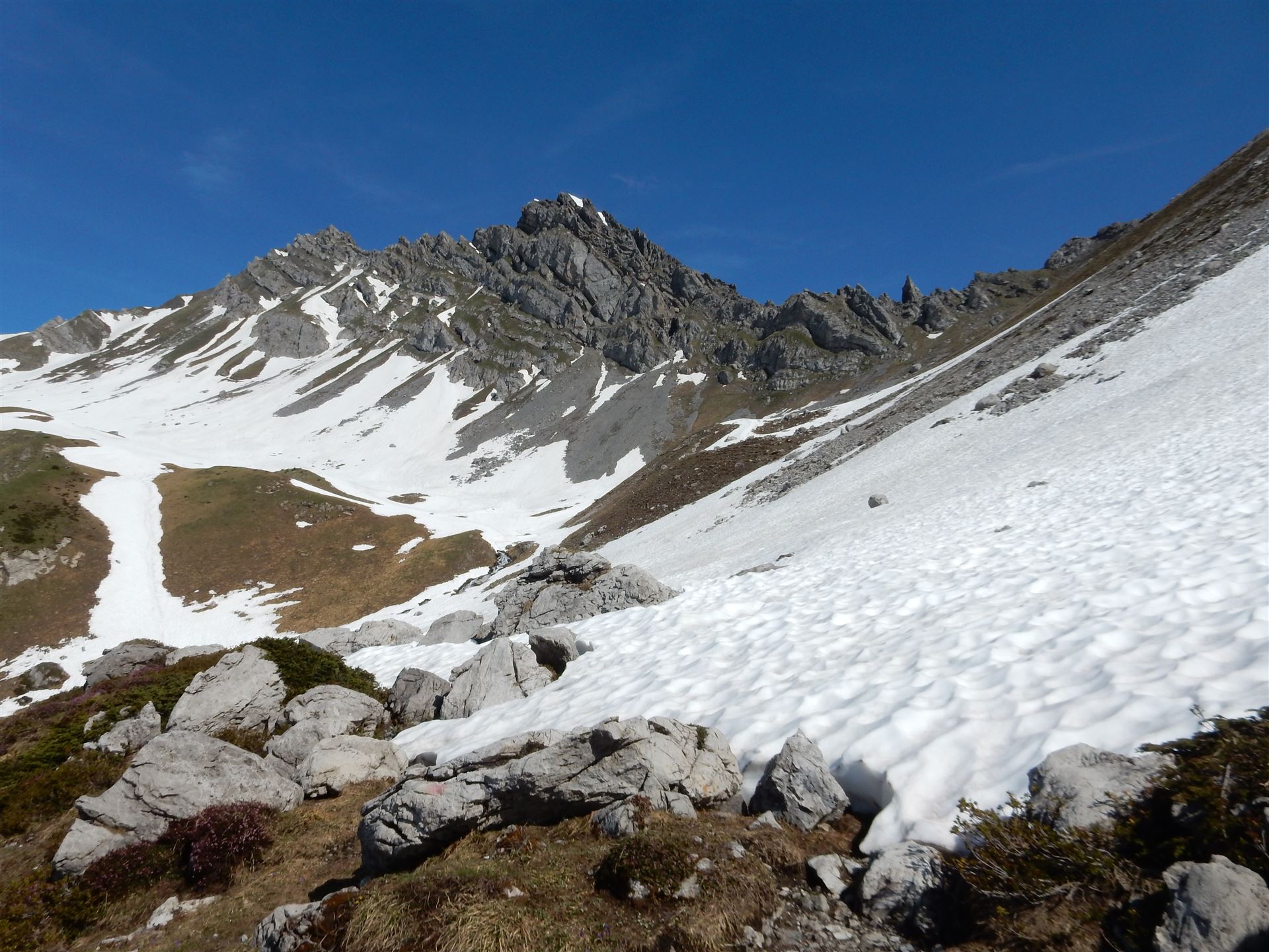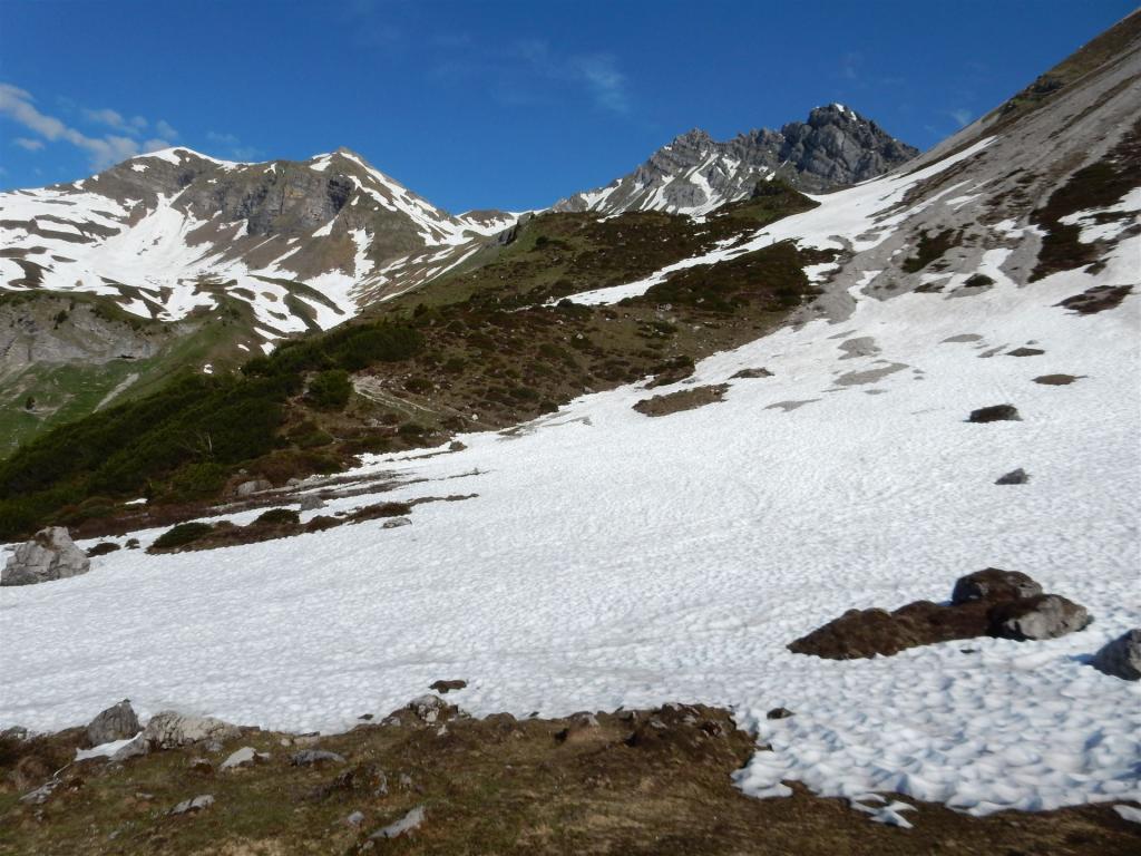 Auf der Chlei Furgga, Blick auf den Aufstieg von österreichischen Seite (Salaruel)