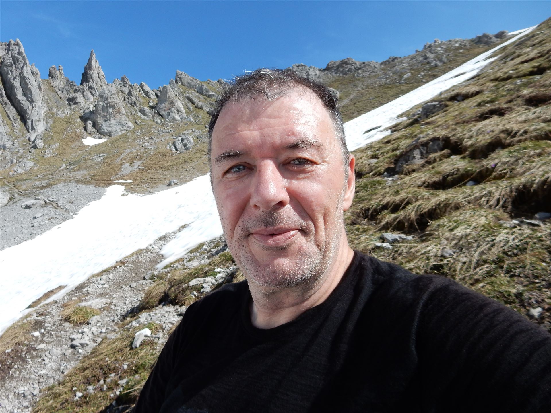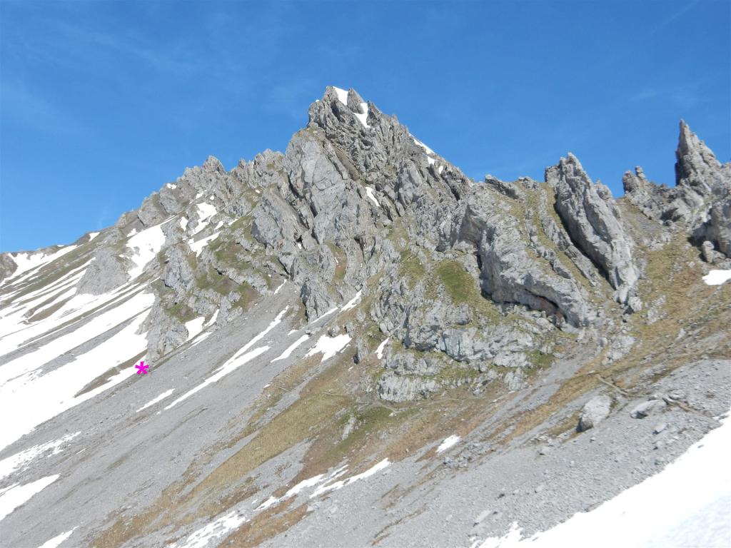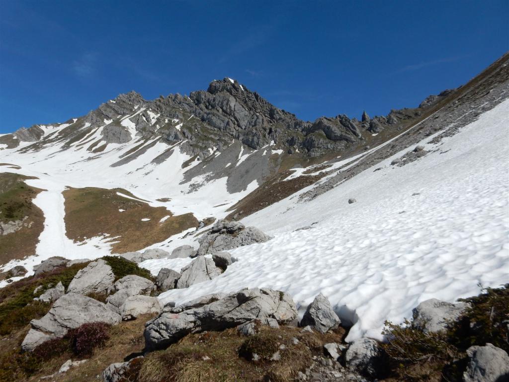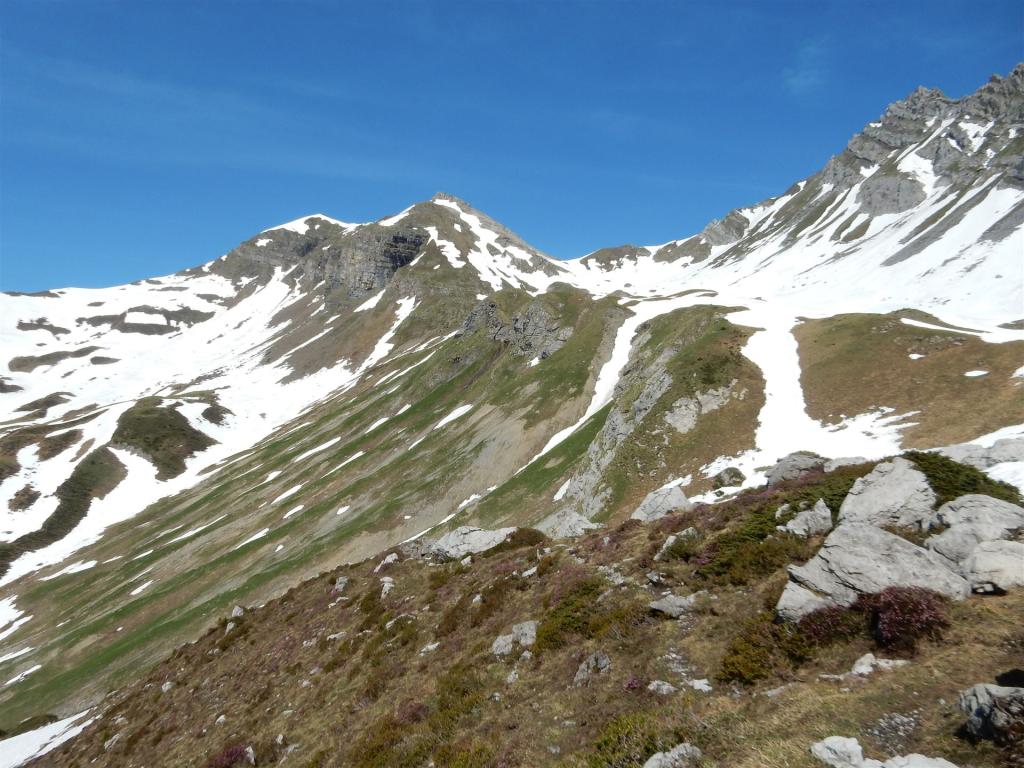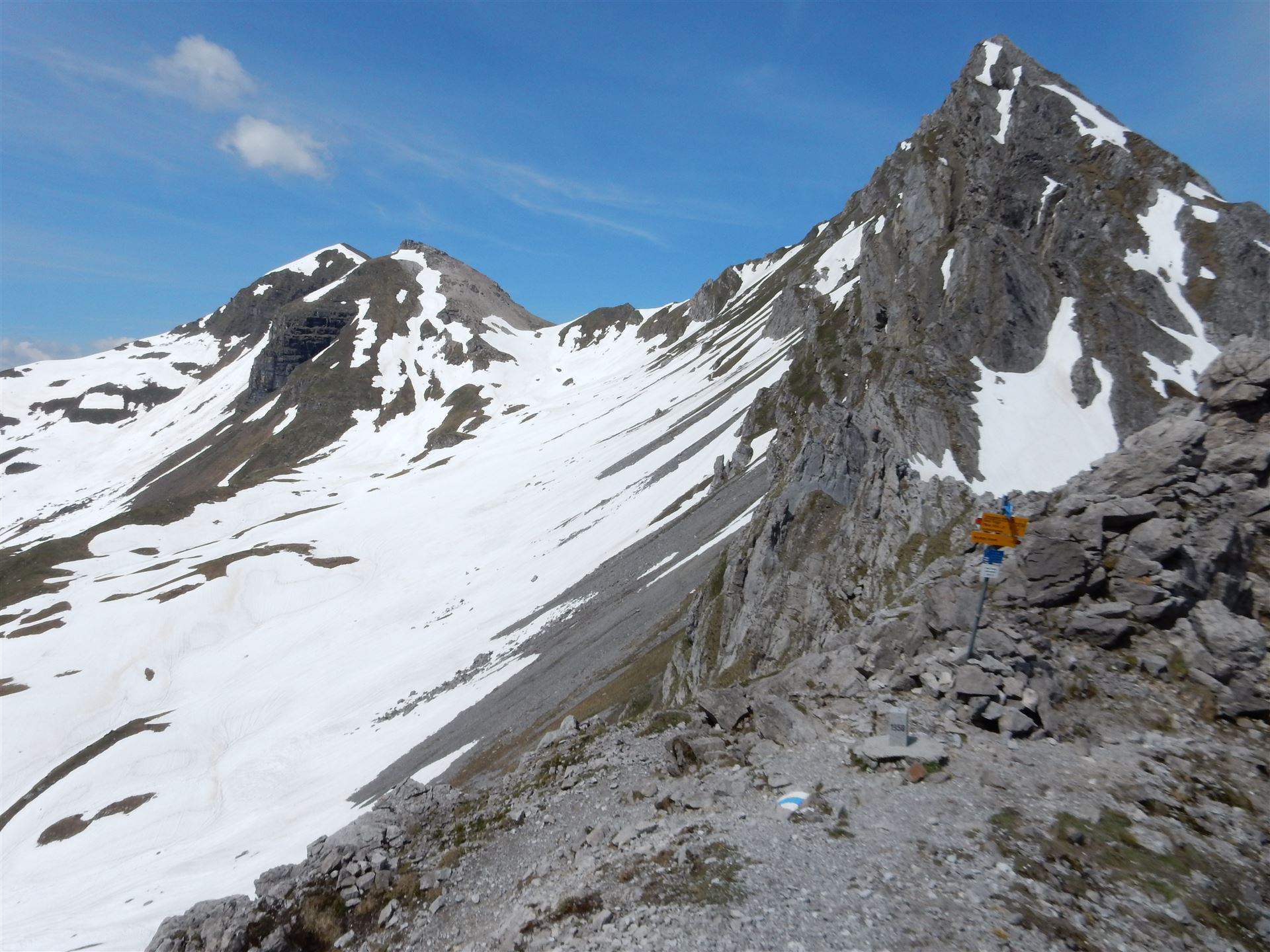 Bei Pt.2012, immer überlegend wo weiter, Blick auf Hornspitz und Chlei Furgga (rechts)