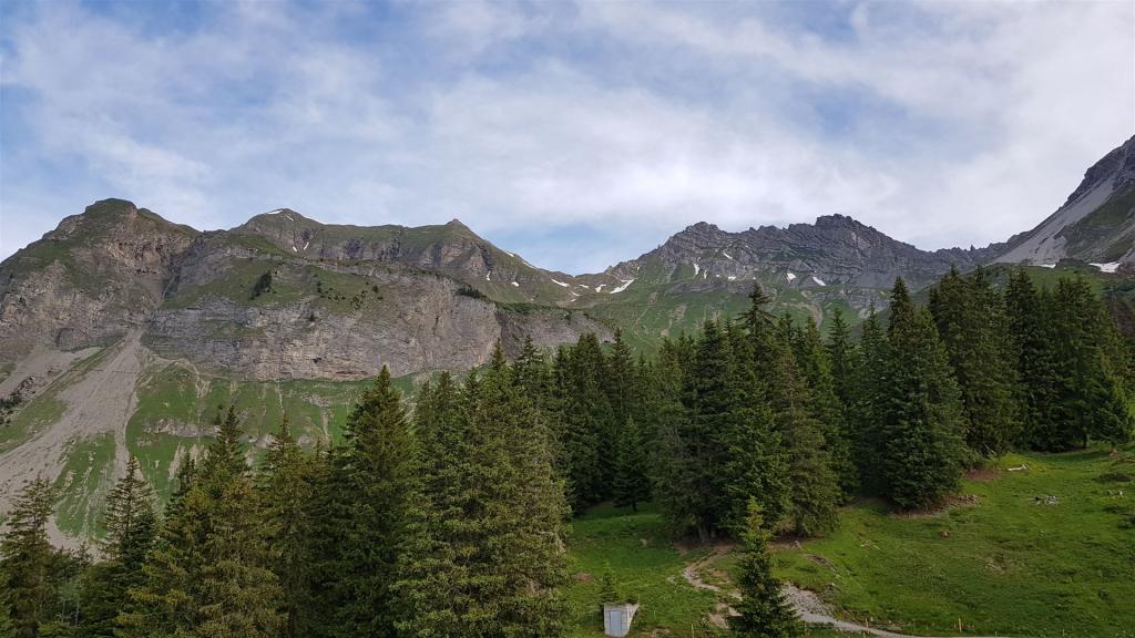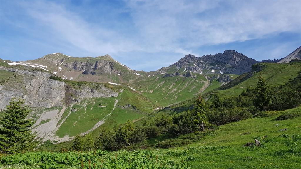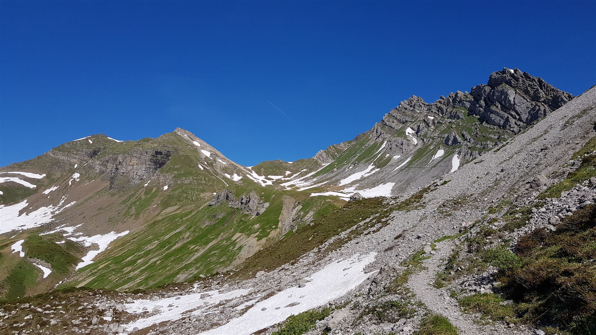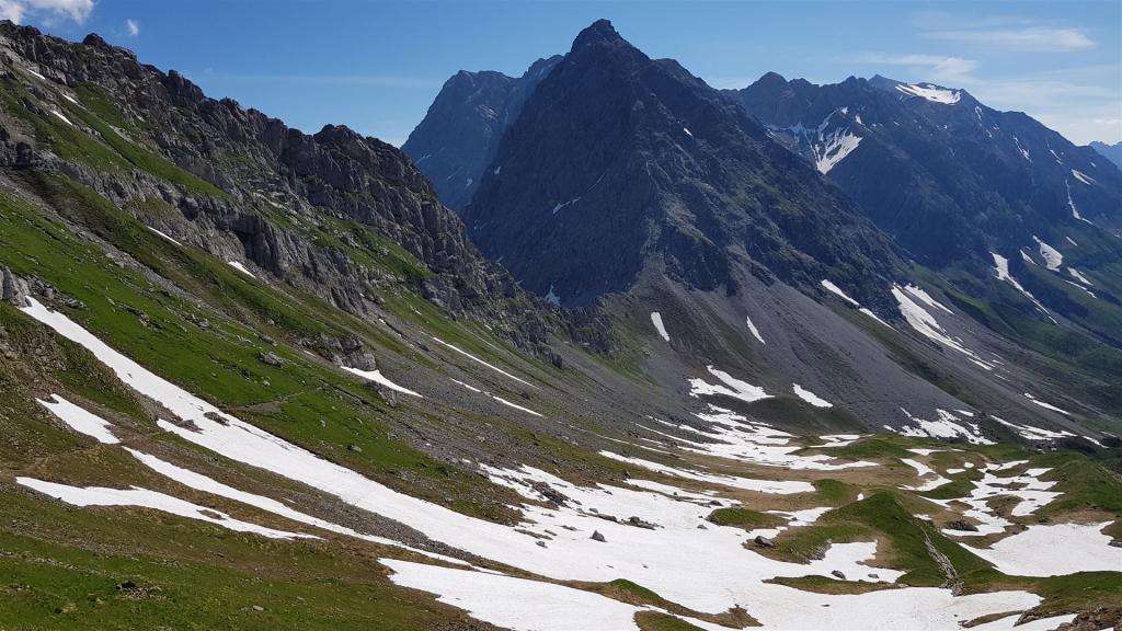 Bei ca. 1700m, Blick auf Tschingel (links), Hornspitz (rechts), Gross Furgga (dazwischen)
