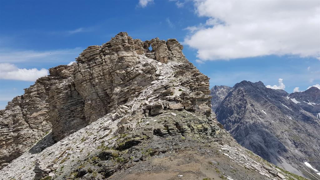Im Abstieg vom Tschingel zur Gross Furgga mit bekanntem Felsenfenster für Fotos