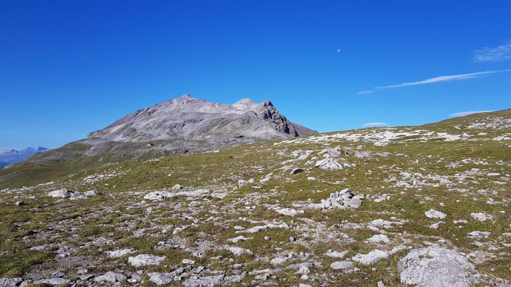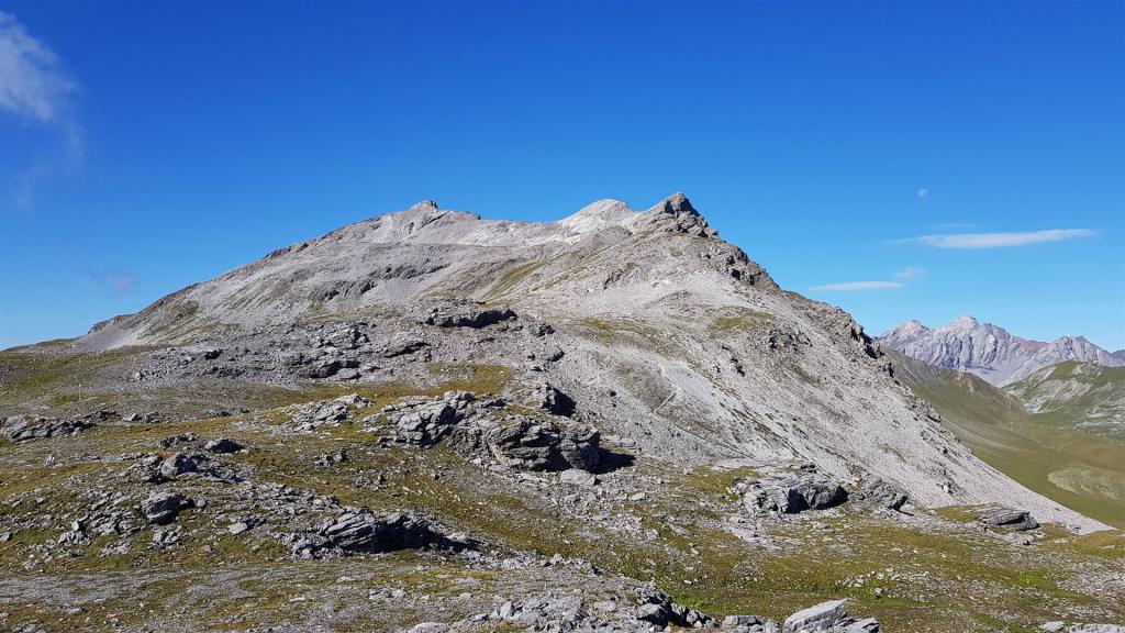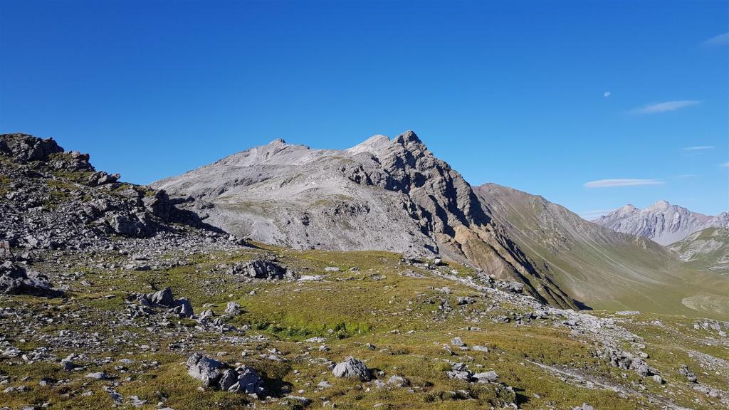 Vor Alteiner Fürggli, schöner Blick auf Valbellahorn, das erst seit kurzer Zeit sichtbar ist