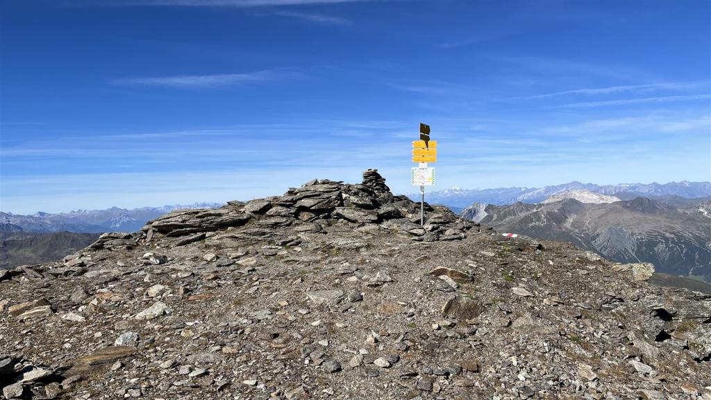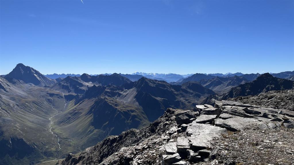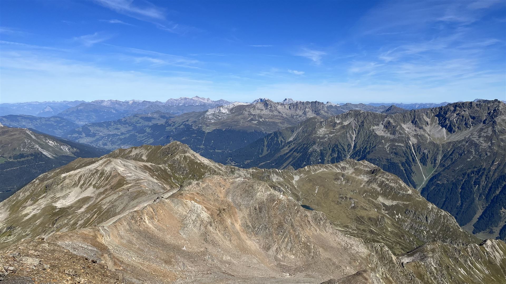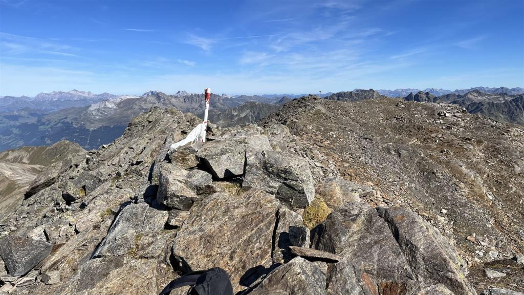 Auf dem 1. von 2 Gipfeln des Pischahorn, der 2. Gipfel ist im Hintergrund