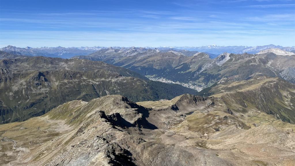 Auf dem Pischahorn, Blick nach Westen mit Davos