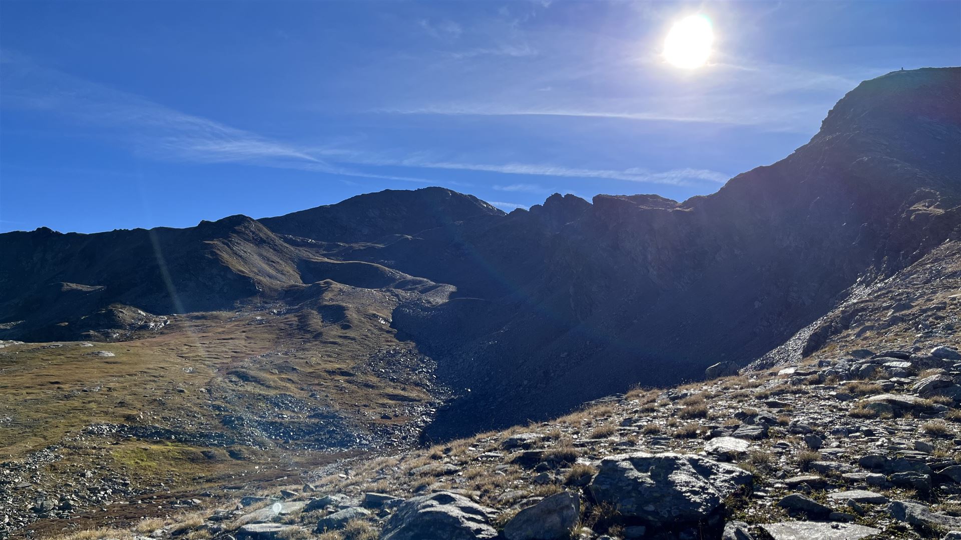 Bei ca. 2580m, das Pischahorn direkt im Sonnenlicht