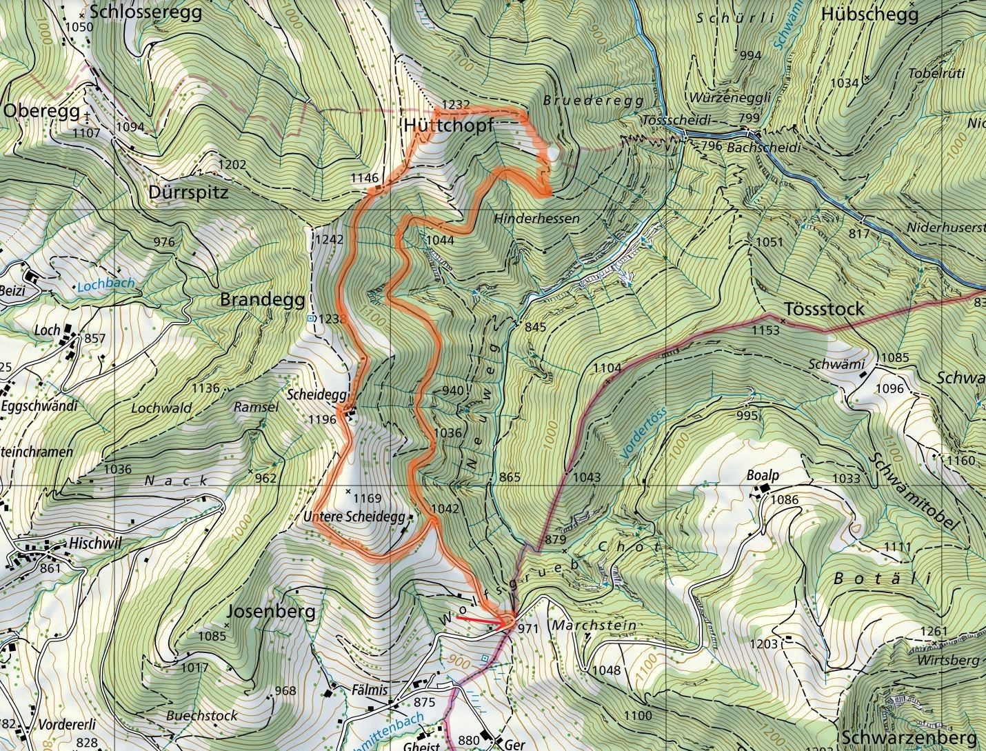 Wald Wolfsgrueb (971m) - Hüttchopf (1232m) - Scheidegg (1196m) - Wald Wofsgrueb (971m)