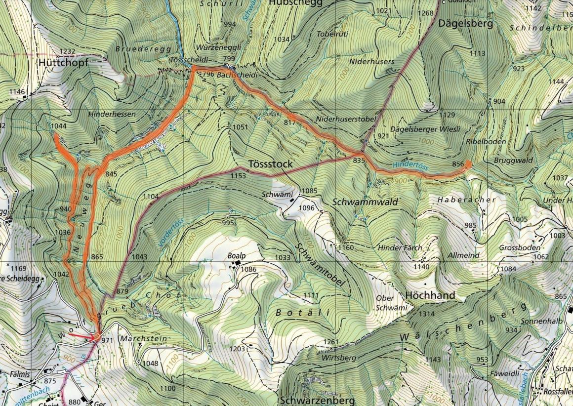 Wir wissen vom Eiszapfen-Gebiet bei der Töss aufgrund der letzten Tour auf den Hüttchopf.