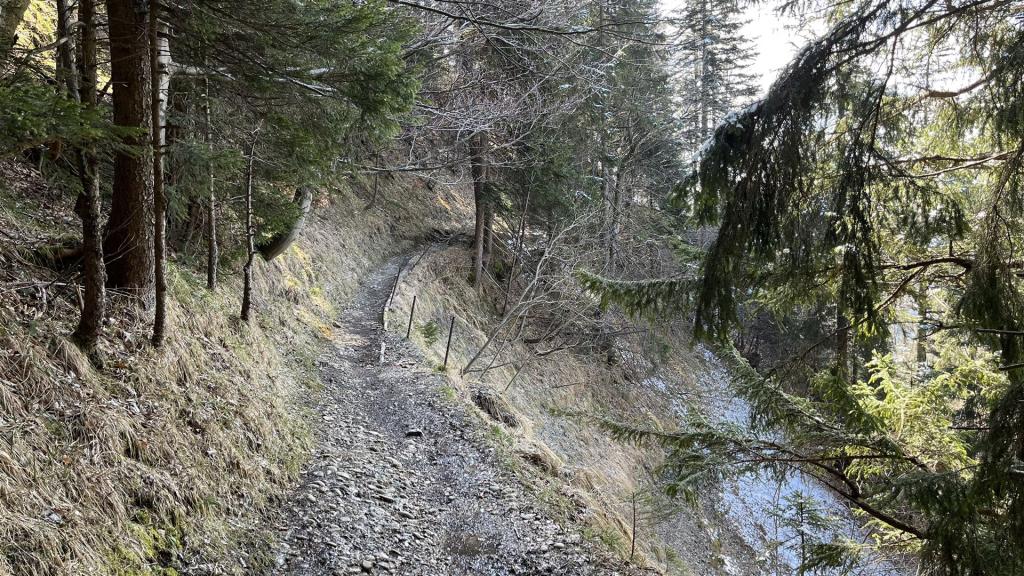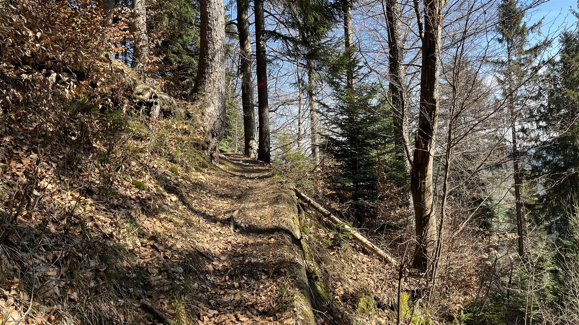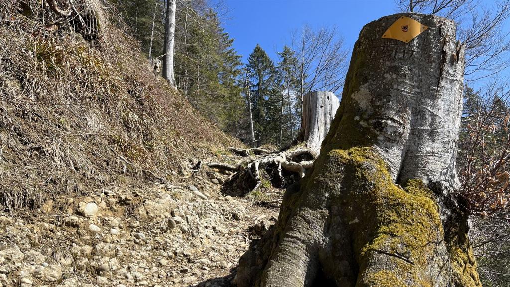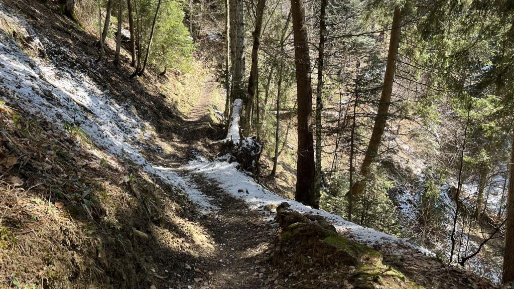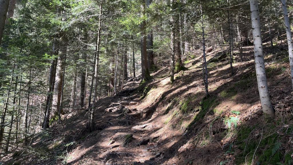 Die Tour beginnt mit einem steileren Aufstieg im Wald
