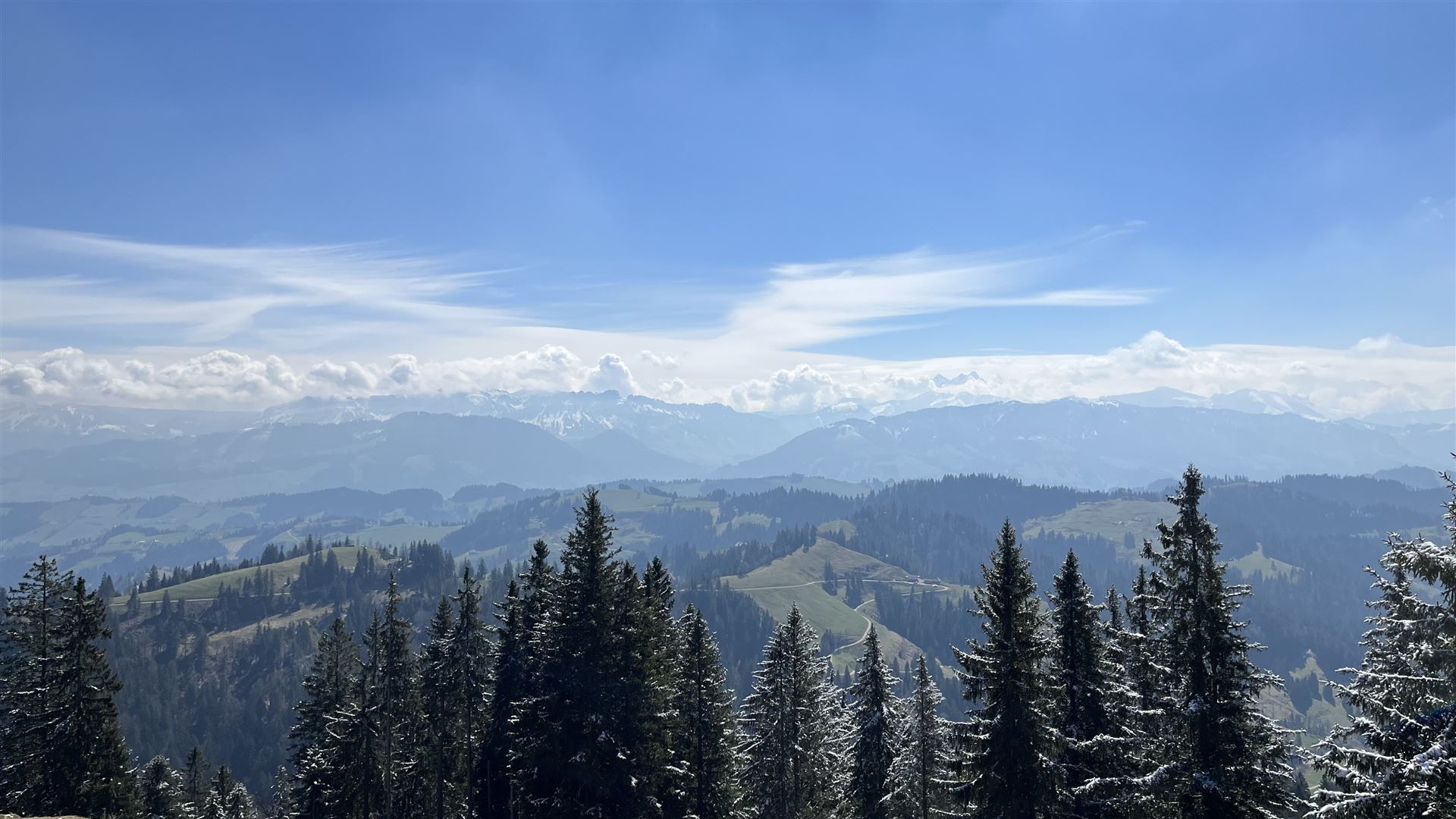Auf dem Napf, Blick gegen Süden, mit schlechter Fernsicht auf die Alpen