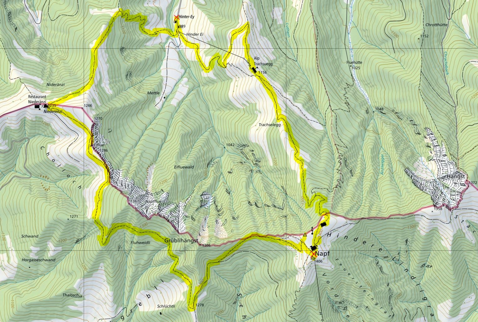 Hinter-Ey (989m) - Niederenzi (1235m) - Napf (1406m) - Trachselegg (1156m) - Hinter-Ey (989m)