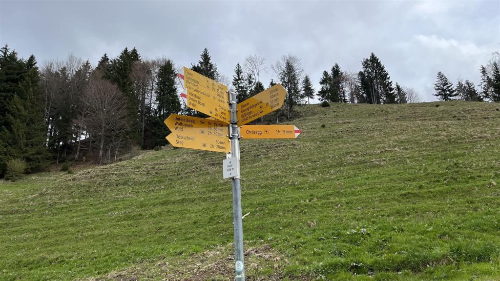 Wald Wolfsgrueb (971m) - Schwämi (1085m) - Hand (1003m) - Chrüzegg (1314m) - Hand (1003m) - Schwämi (1085m) - Boalp (1086m) - Wald Wolfsgrueb (971m)