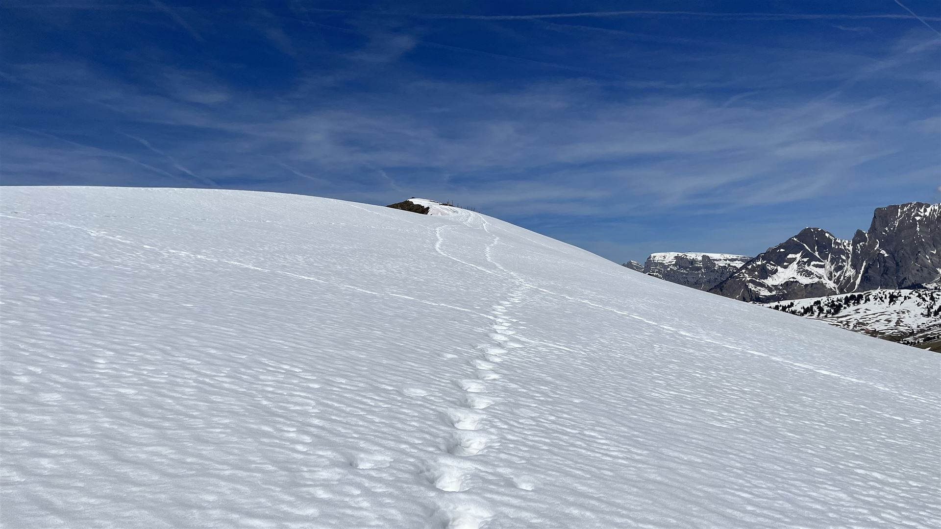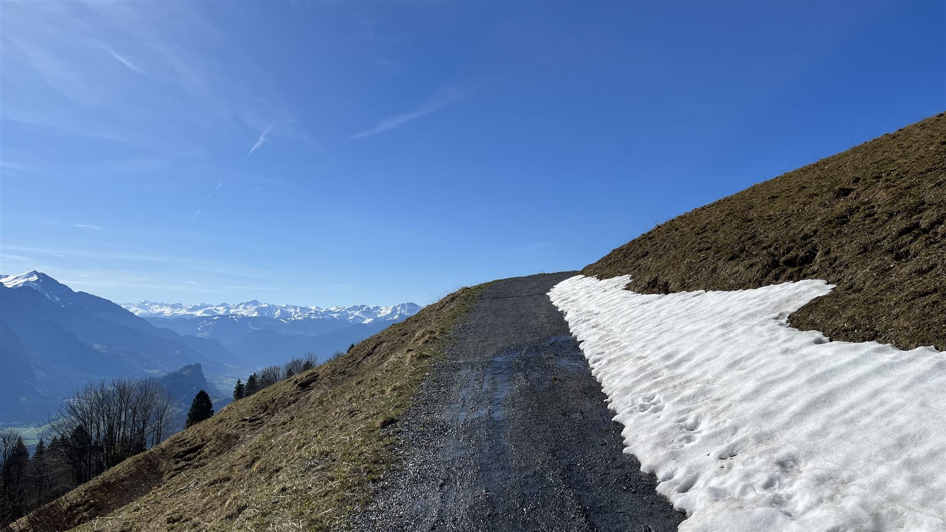 Im Aufstieg auf den Gonzen hat es einige Schneepassagen zu bewältigen