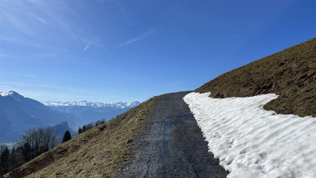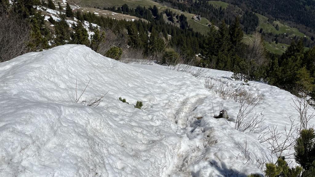 Betreffend Schneesituation war diese Tour machbar, auch weil ich dieses Mal meine Bergschuhe an den Füssen hatte. Allerdings hatte es an speziellen Lagen trotz Wärme immer noch viel Schnee.