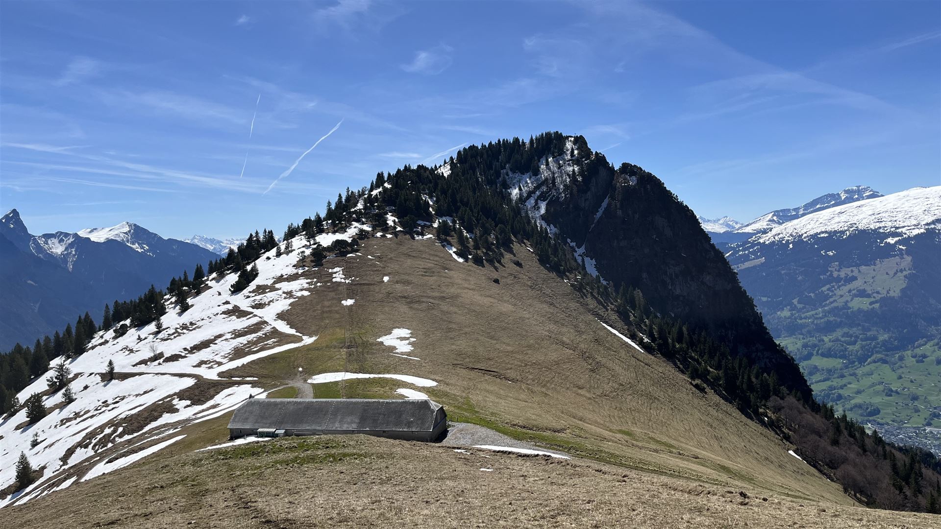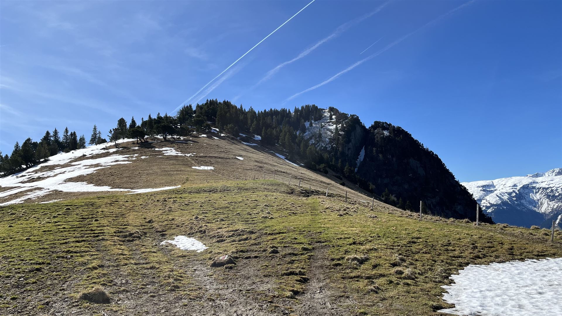 Bei Pt.1669, Blick auf die Aufstiegsroute auf den Gonzen