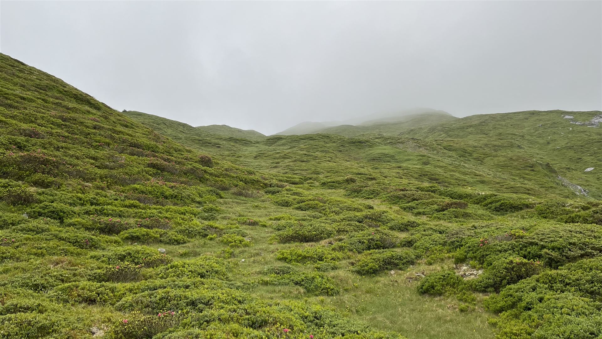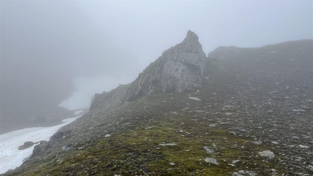 Eine Schwierigkeit der Tour war die Sicht im weglosen Gelände zwischen 2279m und 2726m. Ich sah nichts als Wolken und orientierte mich mit der Karte und dem Höhenmesser.