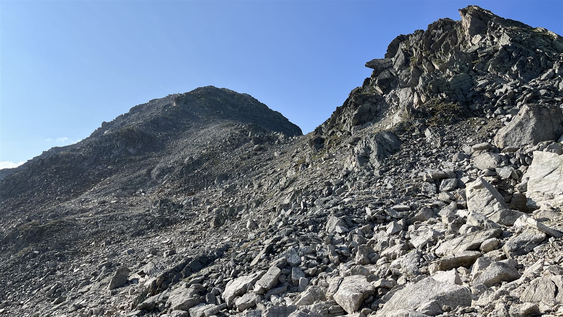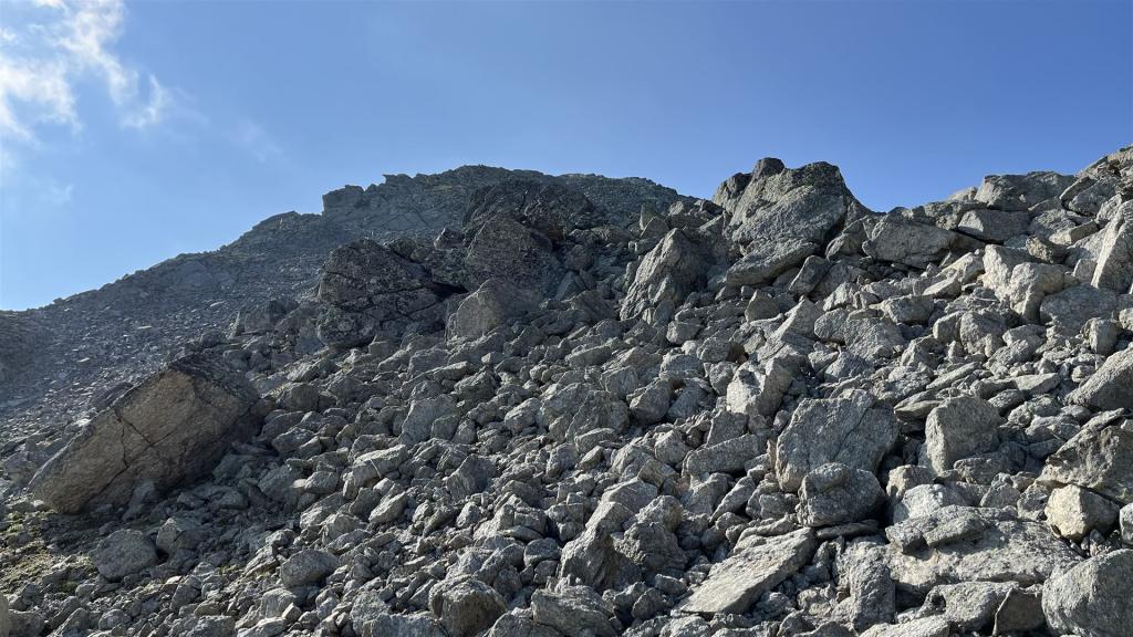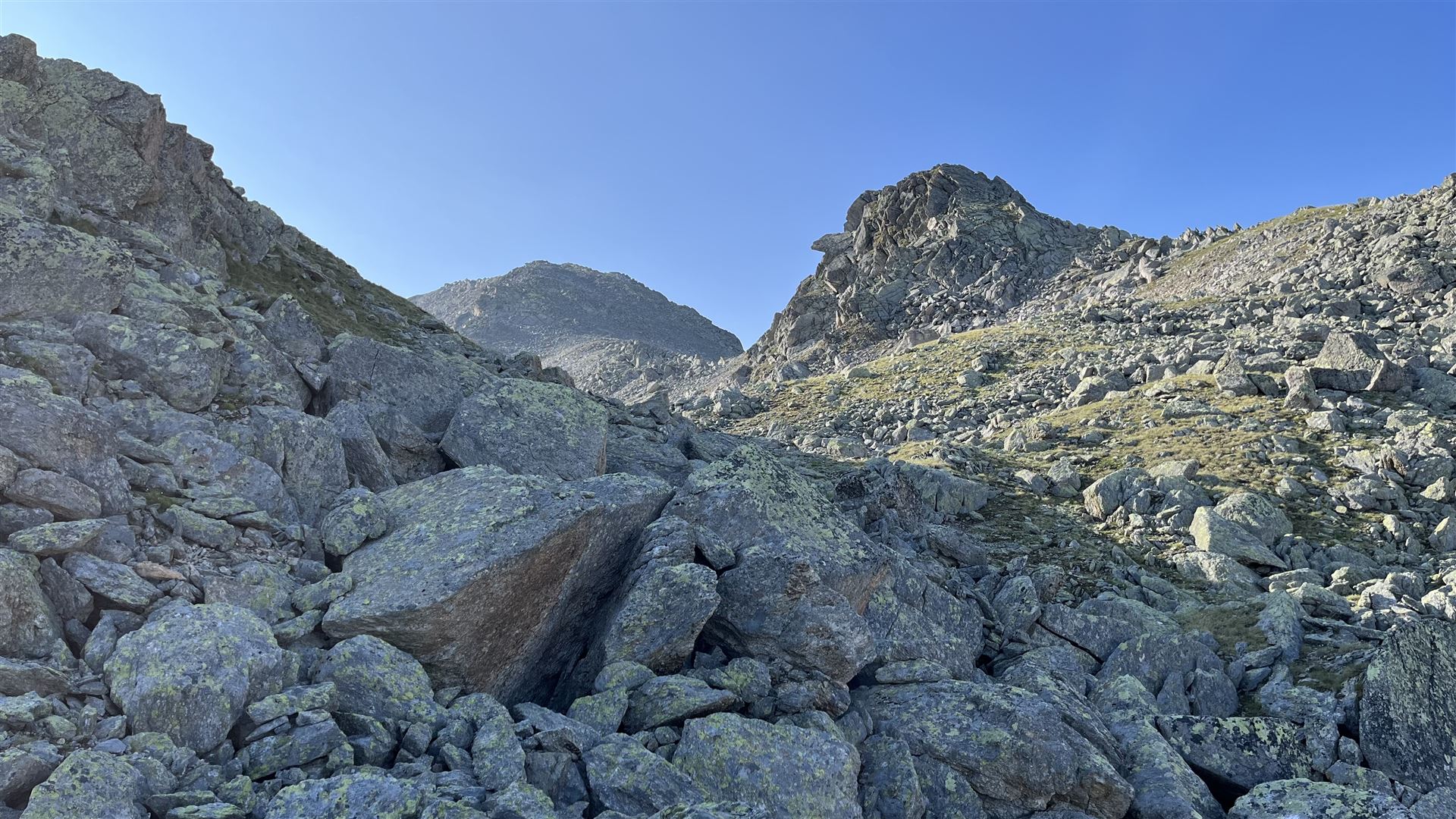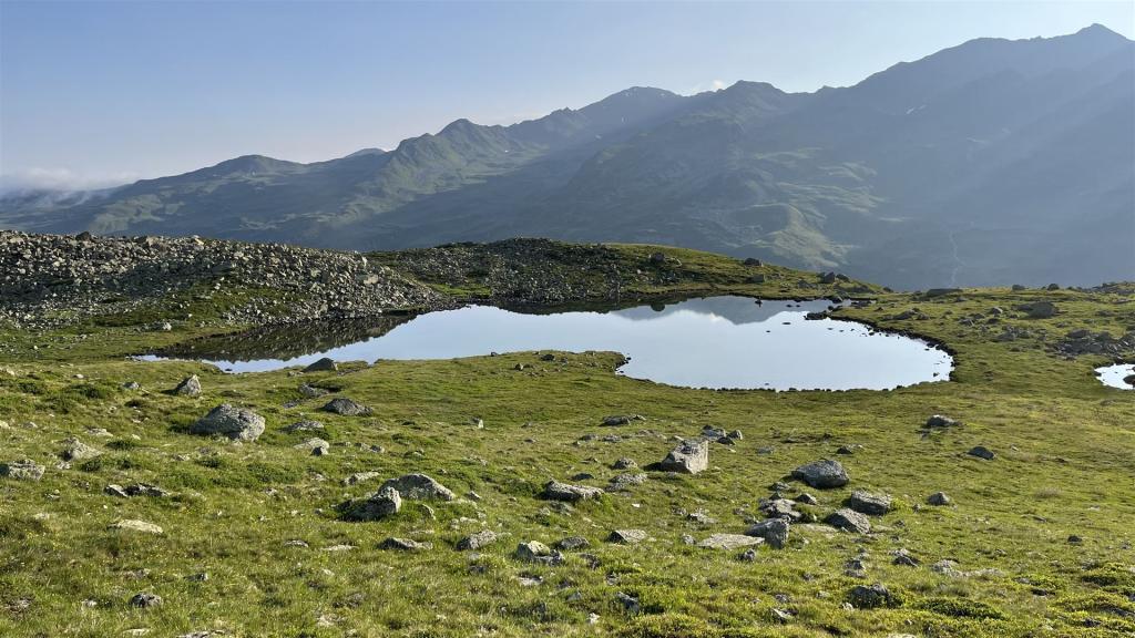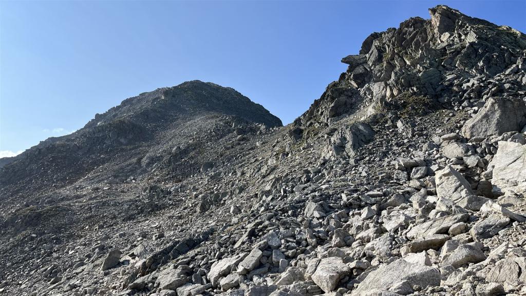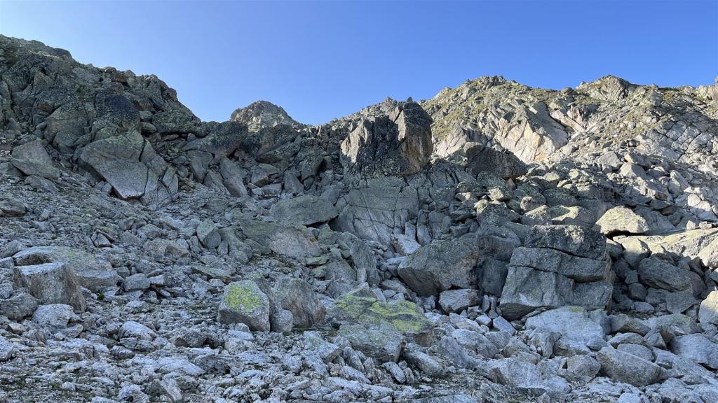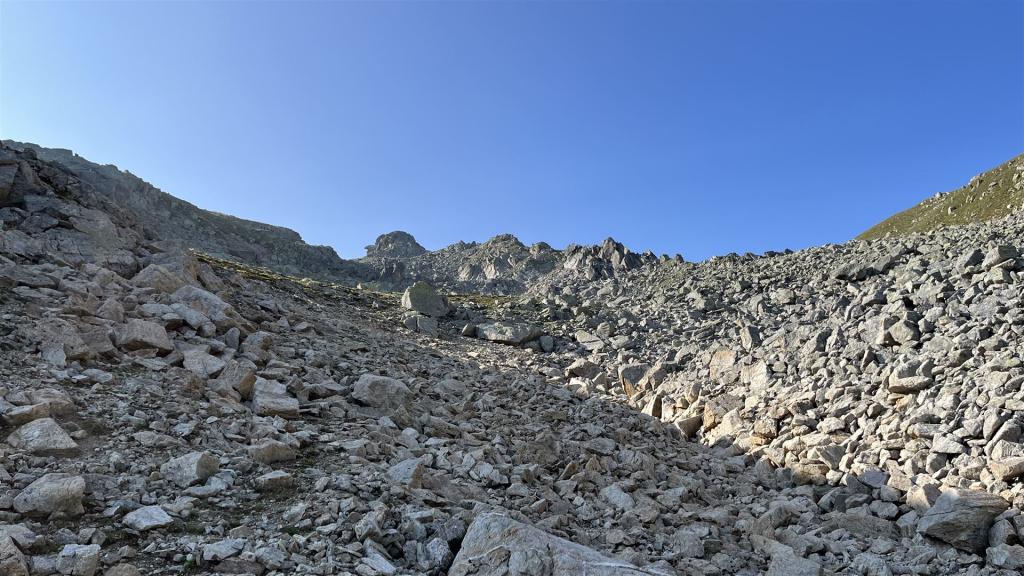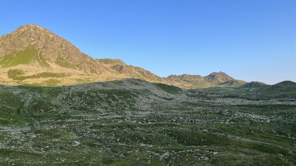 Es gab viel Gras und viel Gestein auf der Tour. Angenehmes Gras eher tiefer mit zusätzlichen Heidelbeeren und Alpenrosen Sträuchern. Blockfelder gab es überall. Geröllhänge gab es höher bis zum Gipfel.