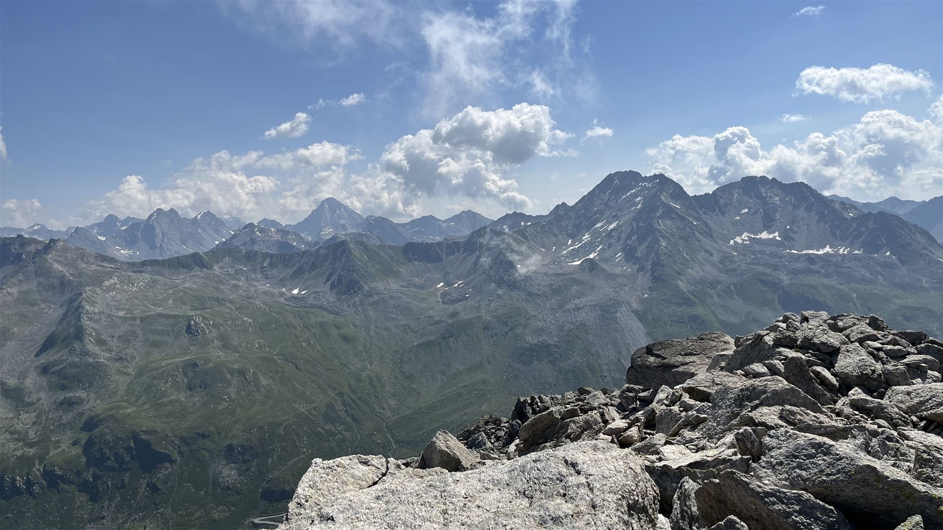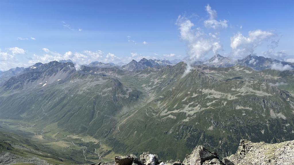 Auf dem Sentisch Horn, Blick auf Flüela Wisshorn, Rosställispitz, Piz Linard, Plattenhörner