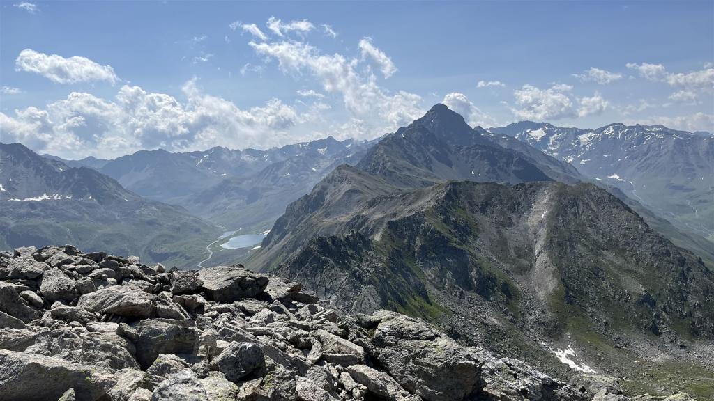 Auf dem Sentisch Horn, Blick auf Flüela Schwarzhorn und Flüelapass