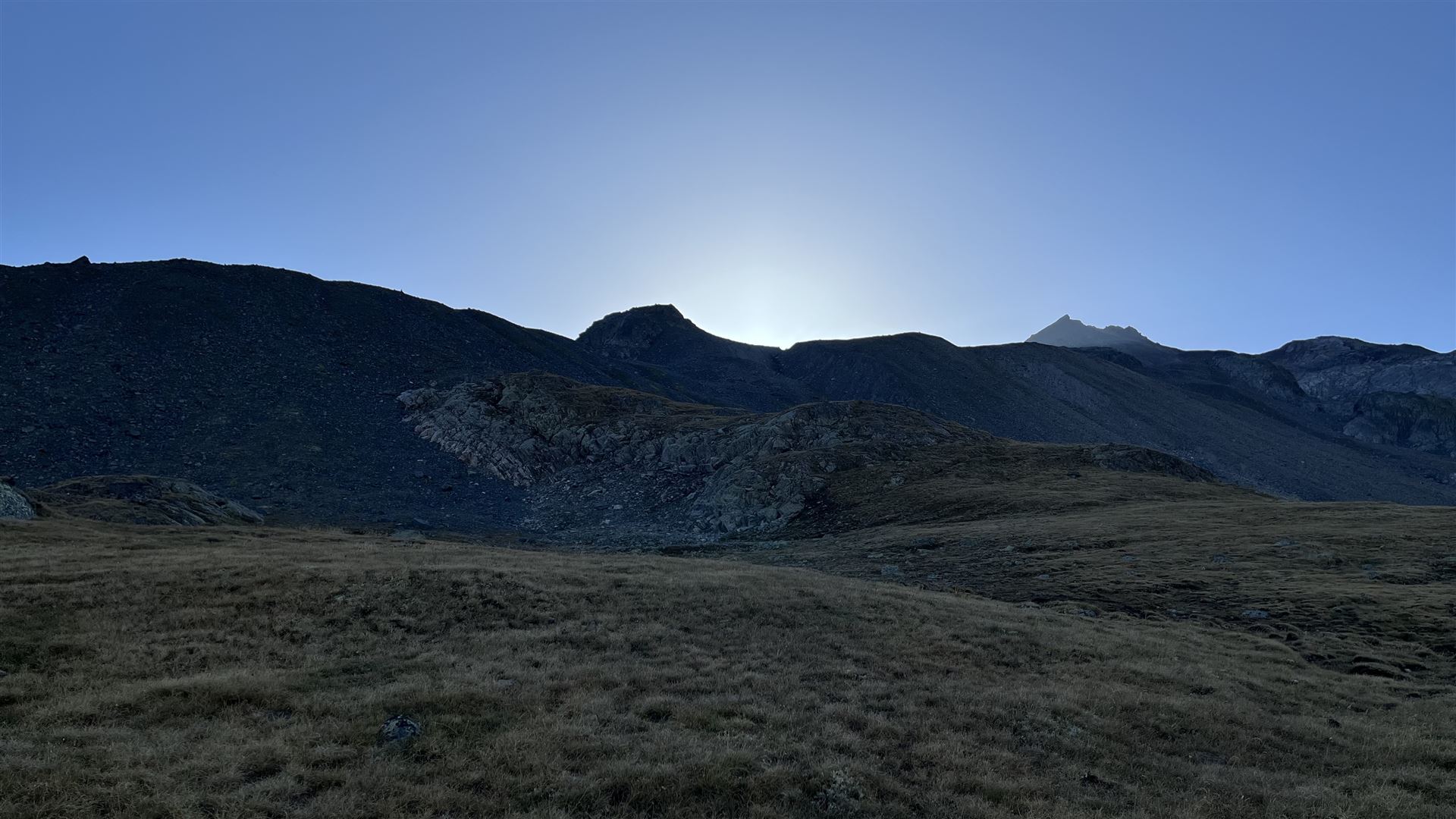 Nach dem Scalettapass, die letzten angenehmen Grasflächen vor dem Geröll