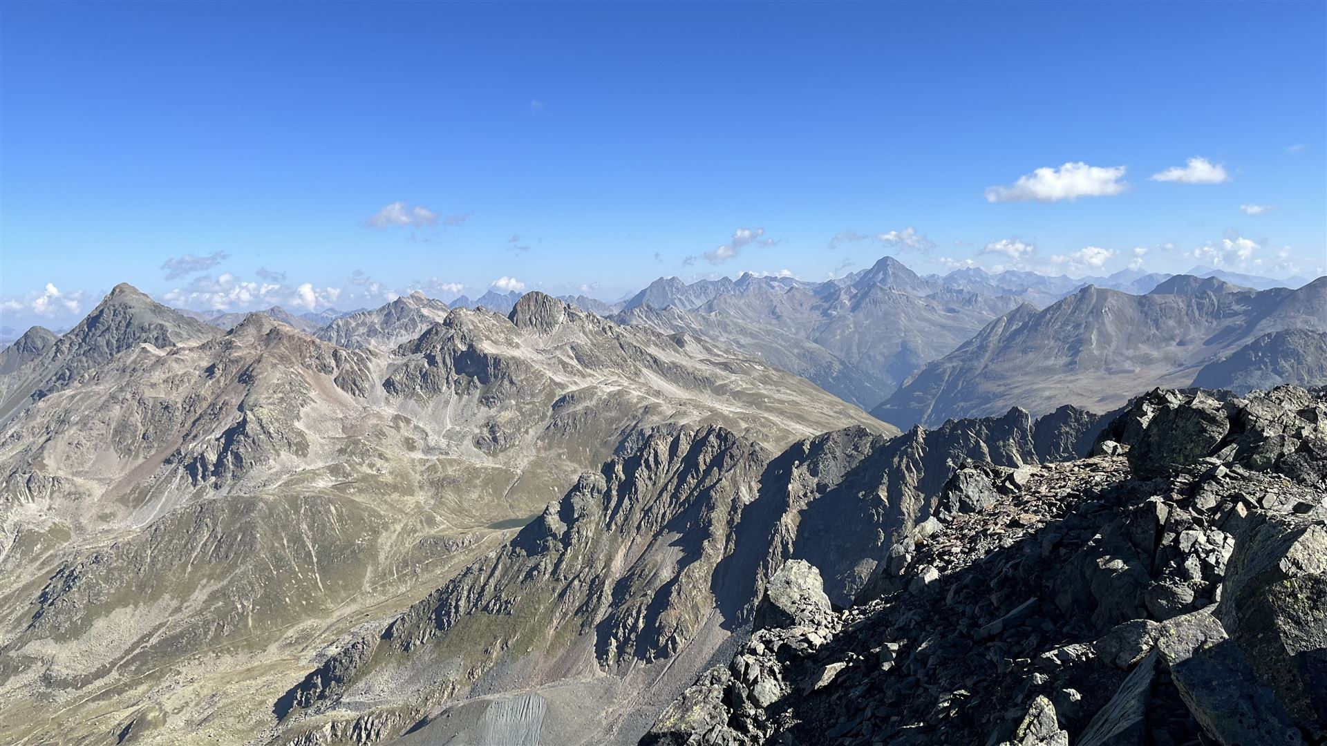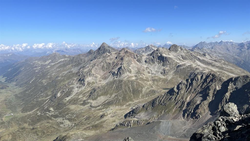 Auf dem Scalettahorn, Blick auf Flüela Schwarzhorn, Flüela Wisshorn, Piz Radönt