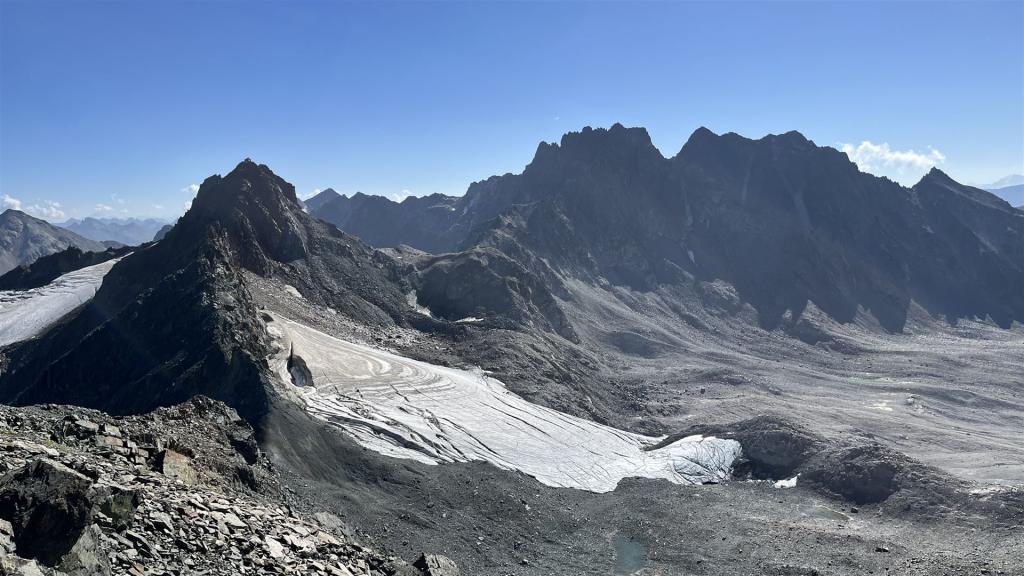 Hinten im Talkessel beim kleinen Gletscher, das Scalettahorn ist links oben