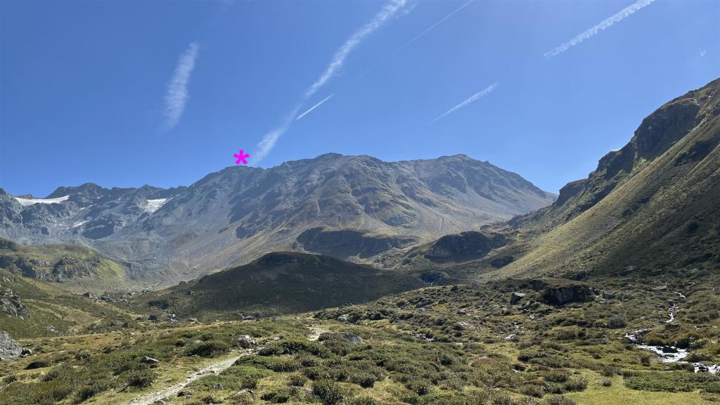 Im Abstieg auf dem richtigen Weg, Blick auf Scalettahorn (Stern)