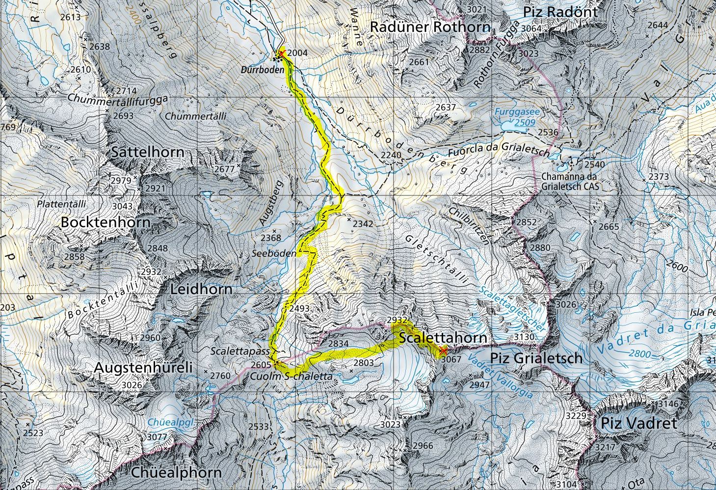 Davos Dürrboden (2004m) - Scalettapass (2605m) - Scalettahorn (3067m) - Scalettapass (2605m) - Davos Dürrboden (2004m)