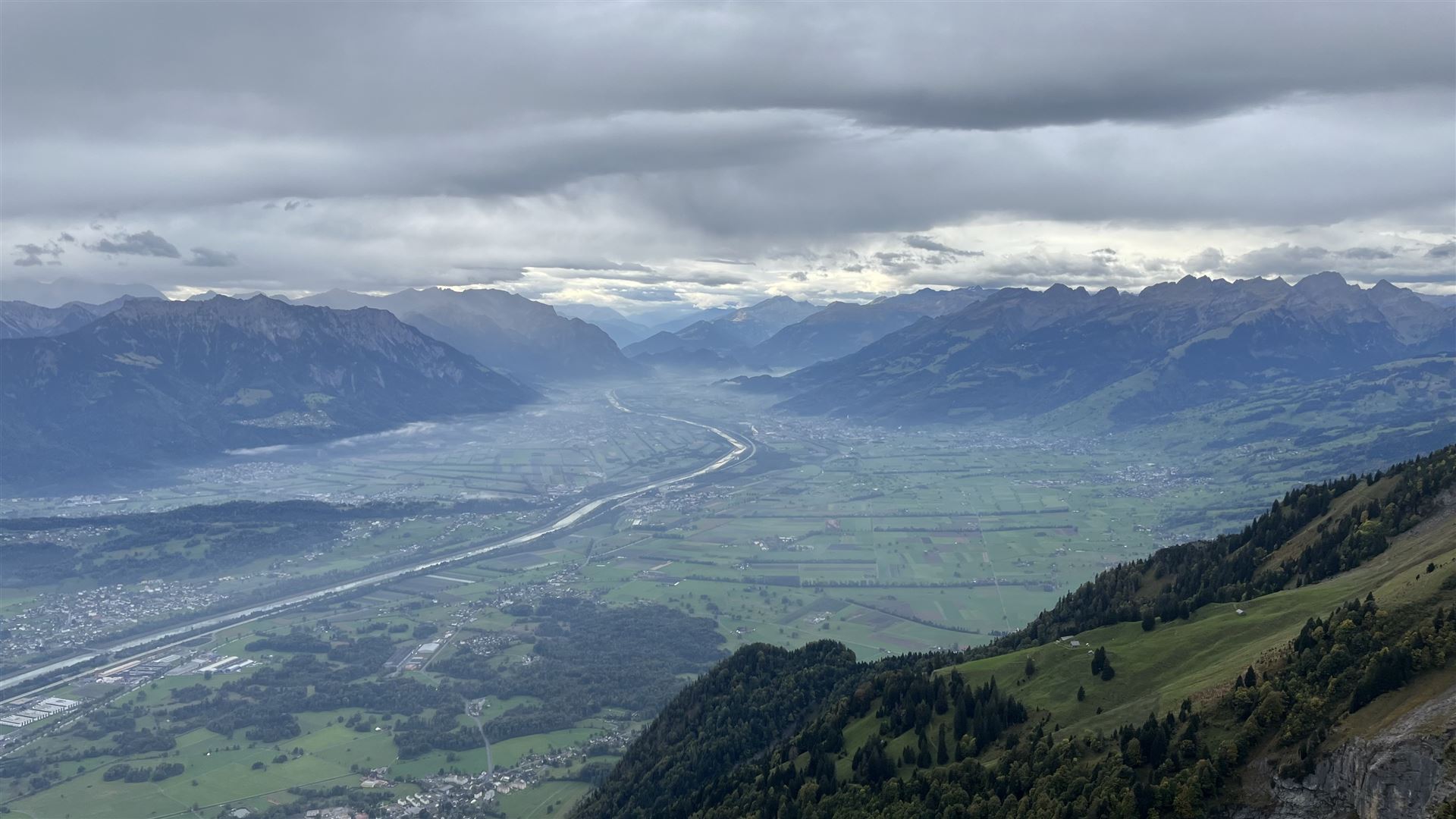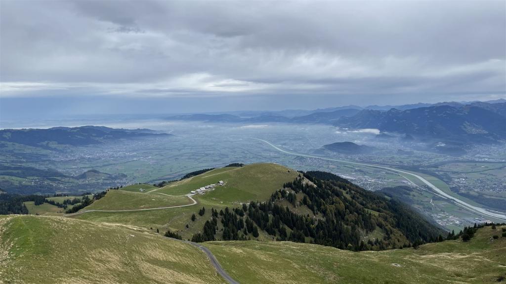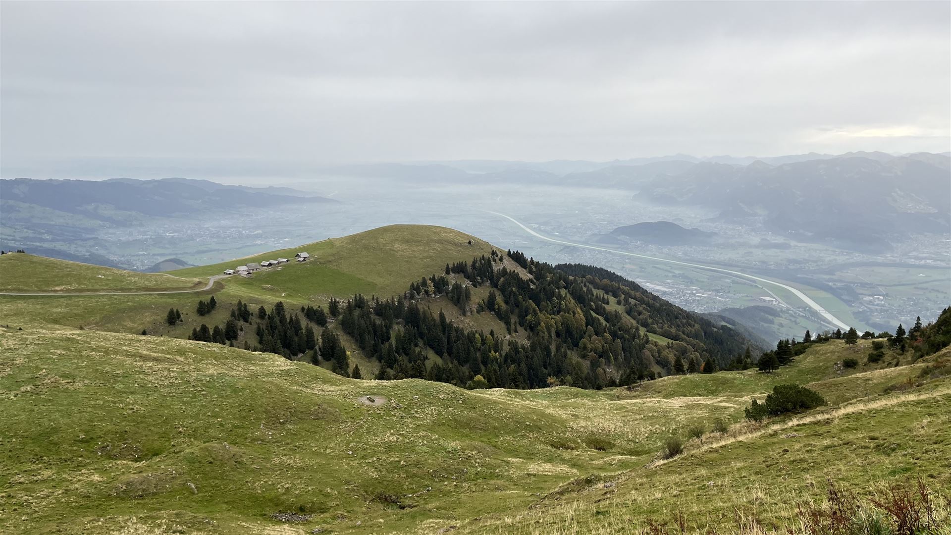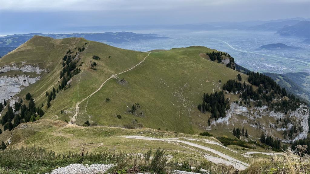 Auf dem Kamor Trestenkopf, Blick auf Abstiegsroute und Rheintal