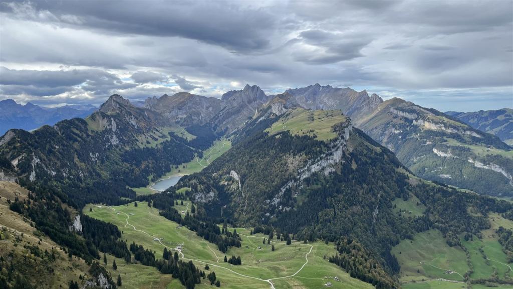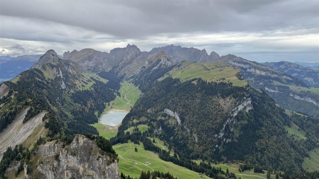 Auf dem Hoher Kasten, Blick auf Säntis mit Sämtisersee