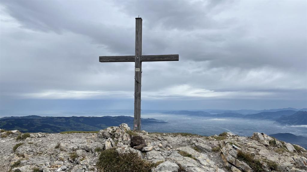 Das Wetter war im Aufstieg relativ eklig. Der starke Föhnsturm mit zeitweisem Regen war unangenehm. Nach 2 Stunden war ich auf dem Gipfel.