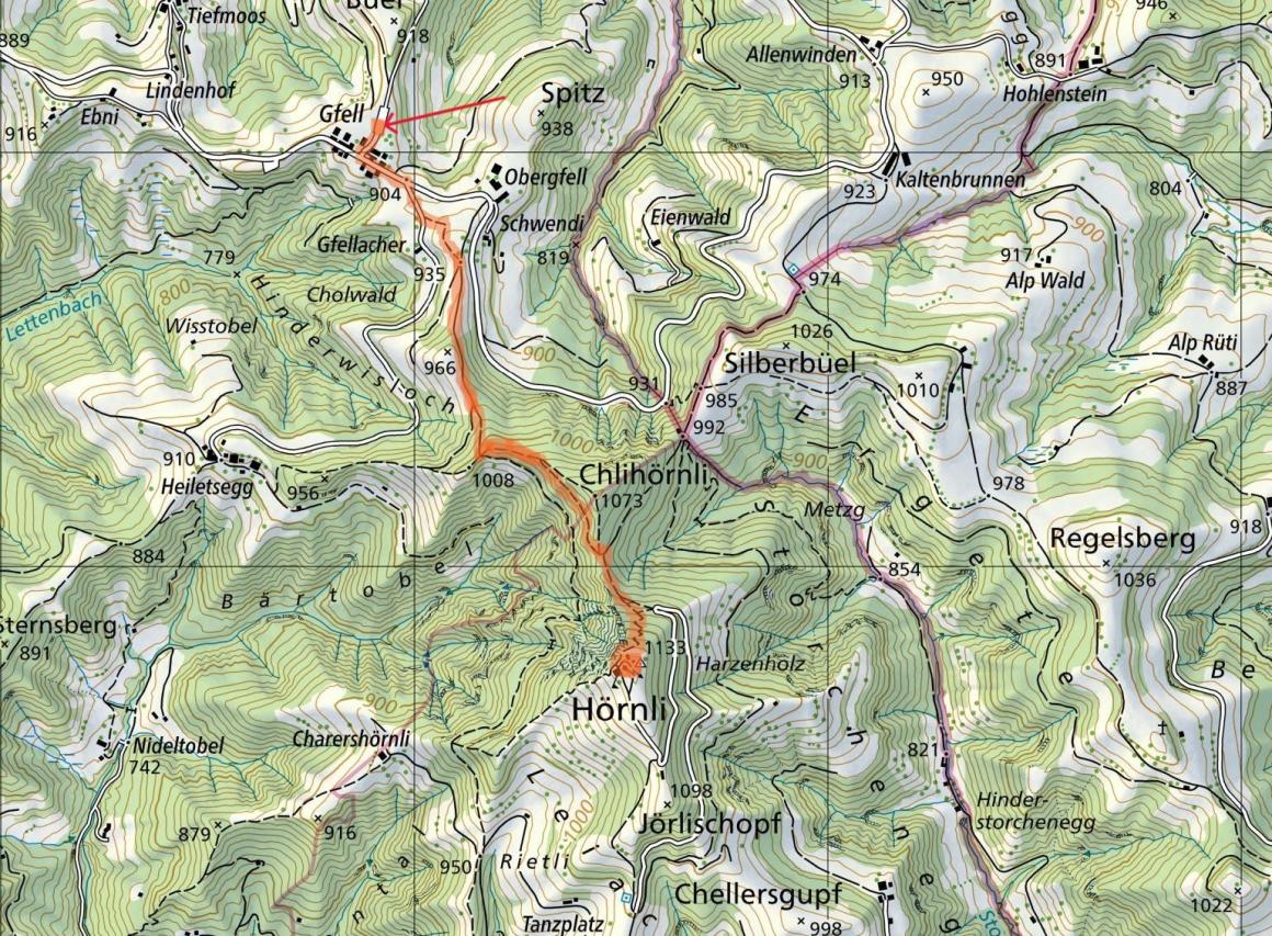 Gfell (904m) - Hörnli (1133m) - Gfell (904m)