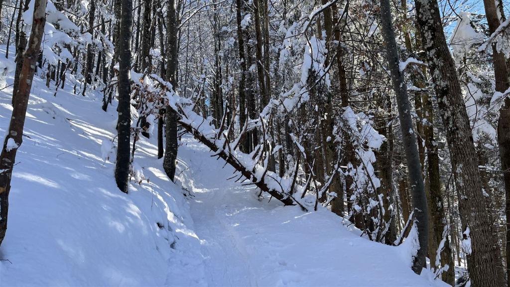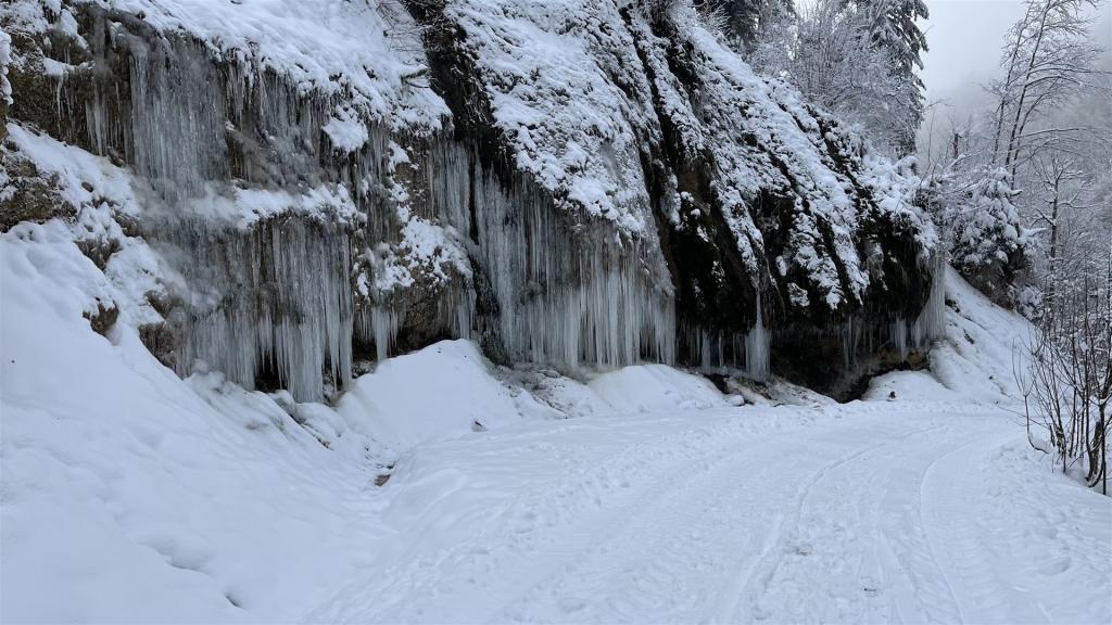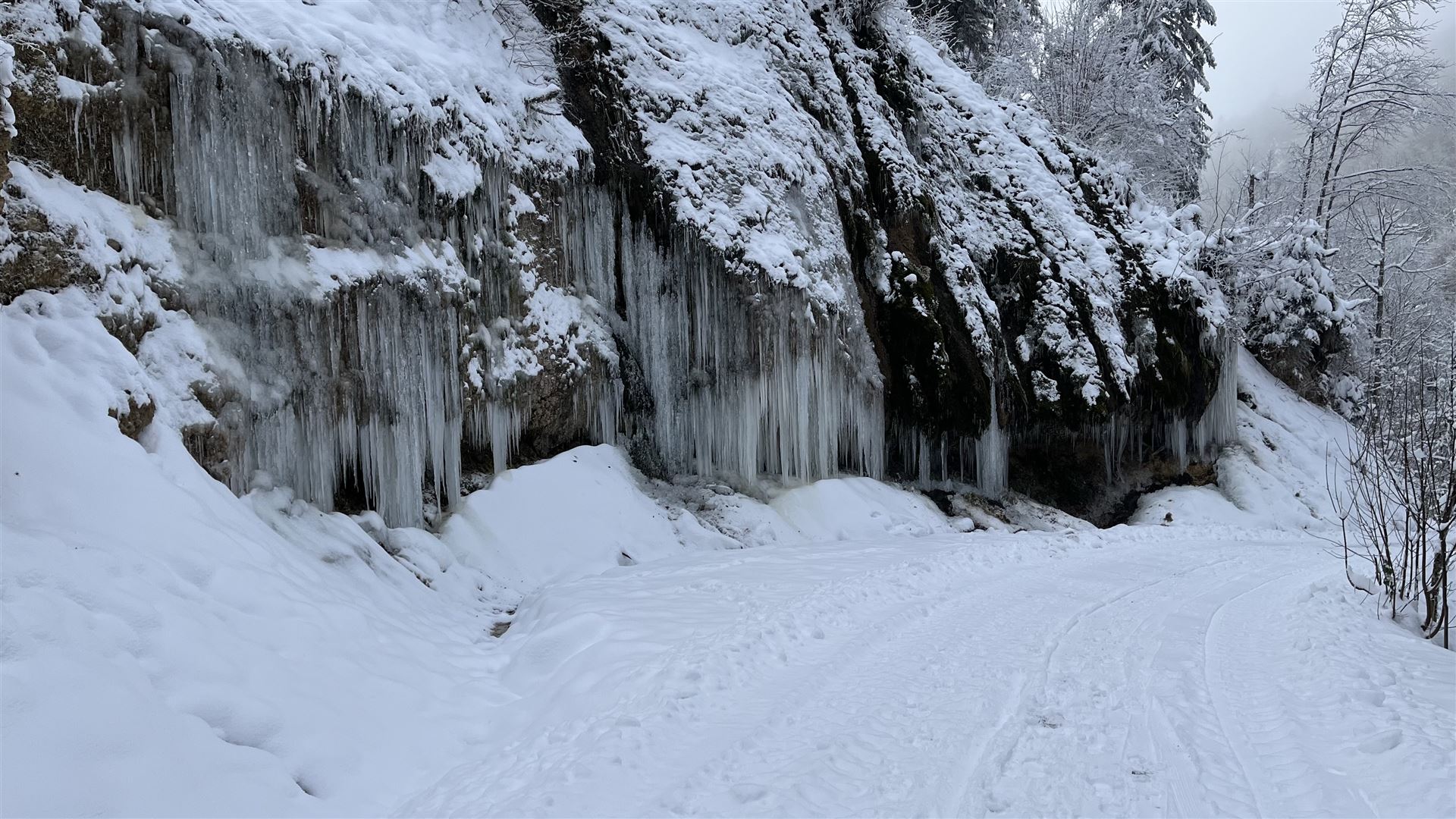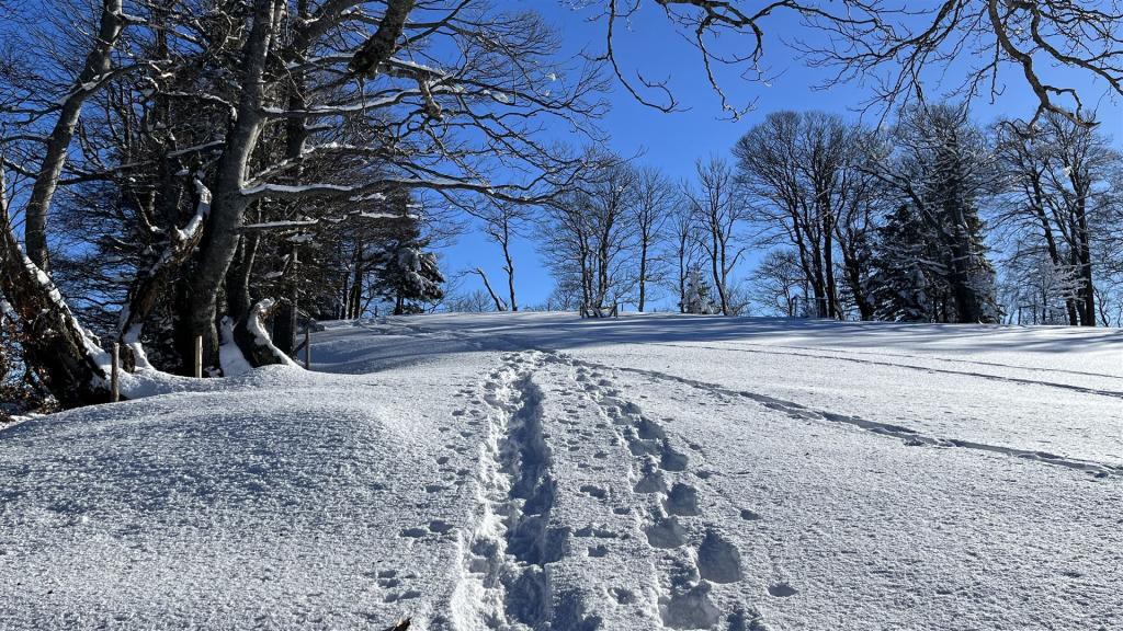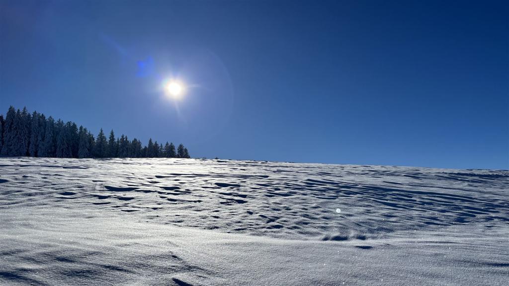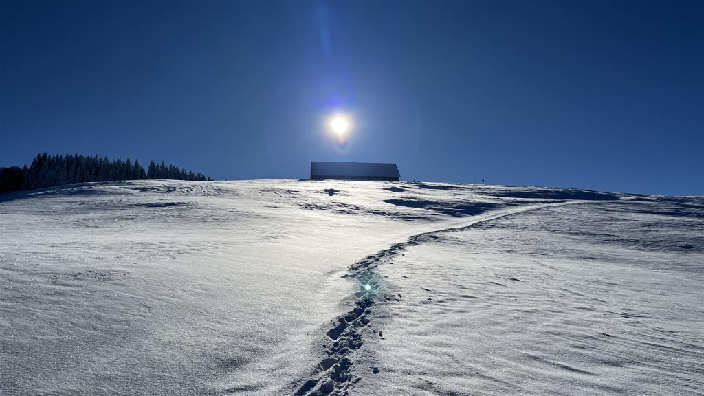 Genuss pur, mit den Winterschuhen im Schnee laufen. Dabei ein grösserer Teil im Tiefschnee teilweise mit Schneeschuh-Spuren.