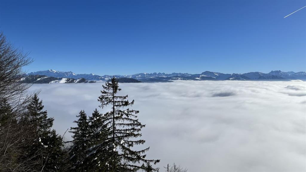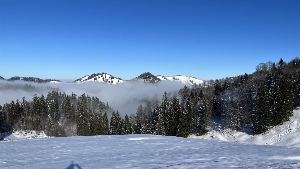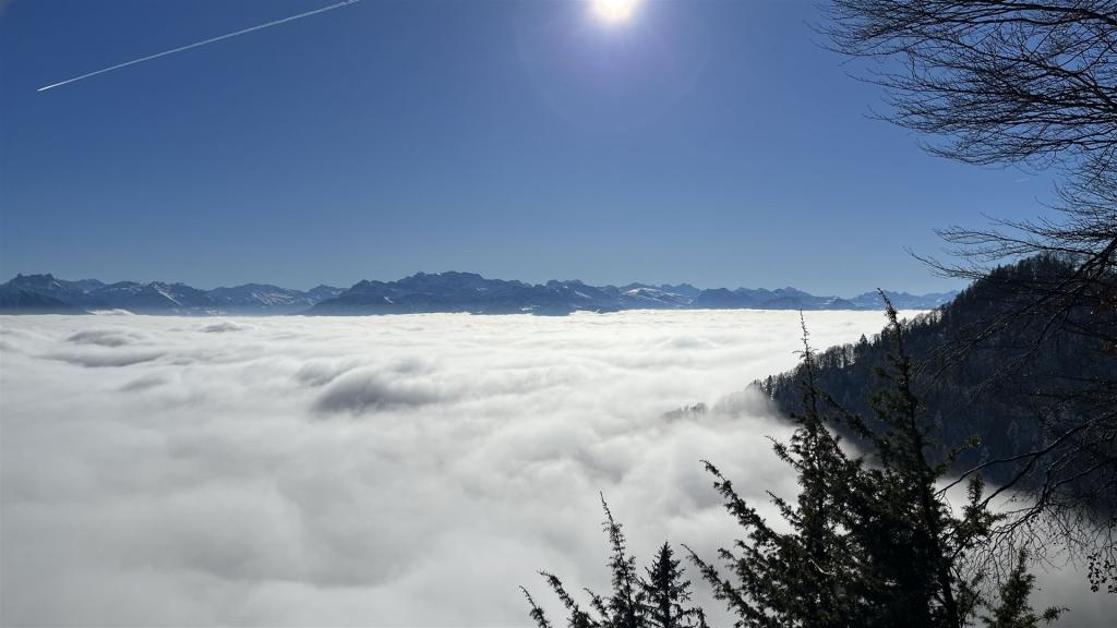 Wunderschöne Winterwanderung mit dem Super-Wetter. Unten Nebel, darüber Sonne mit blauem Himmel. Eine einmalige Stimmung.