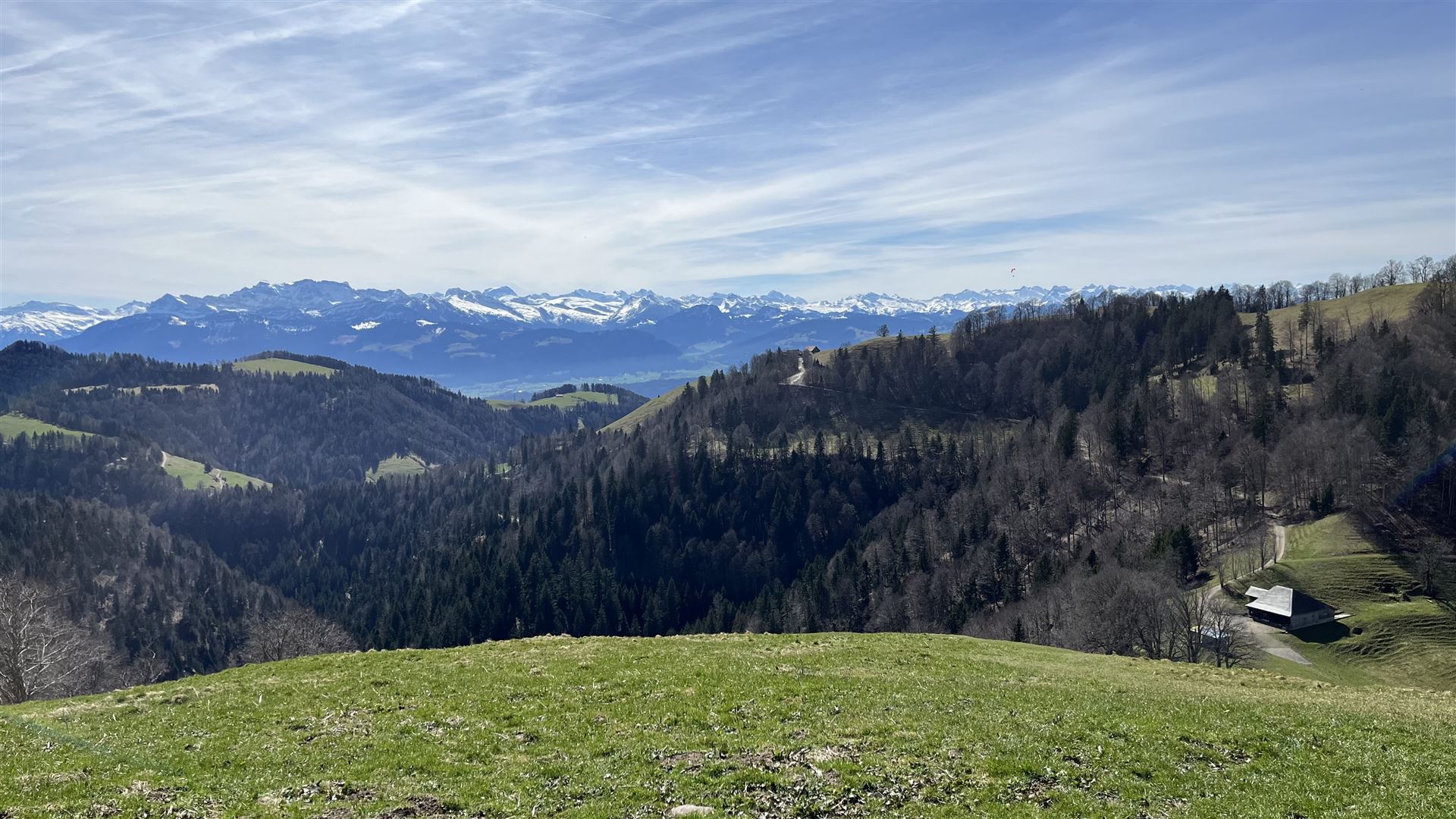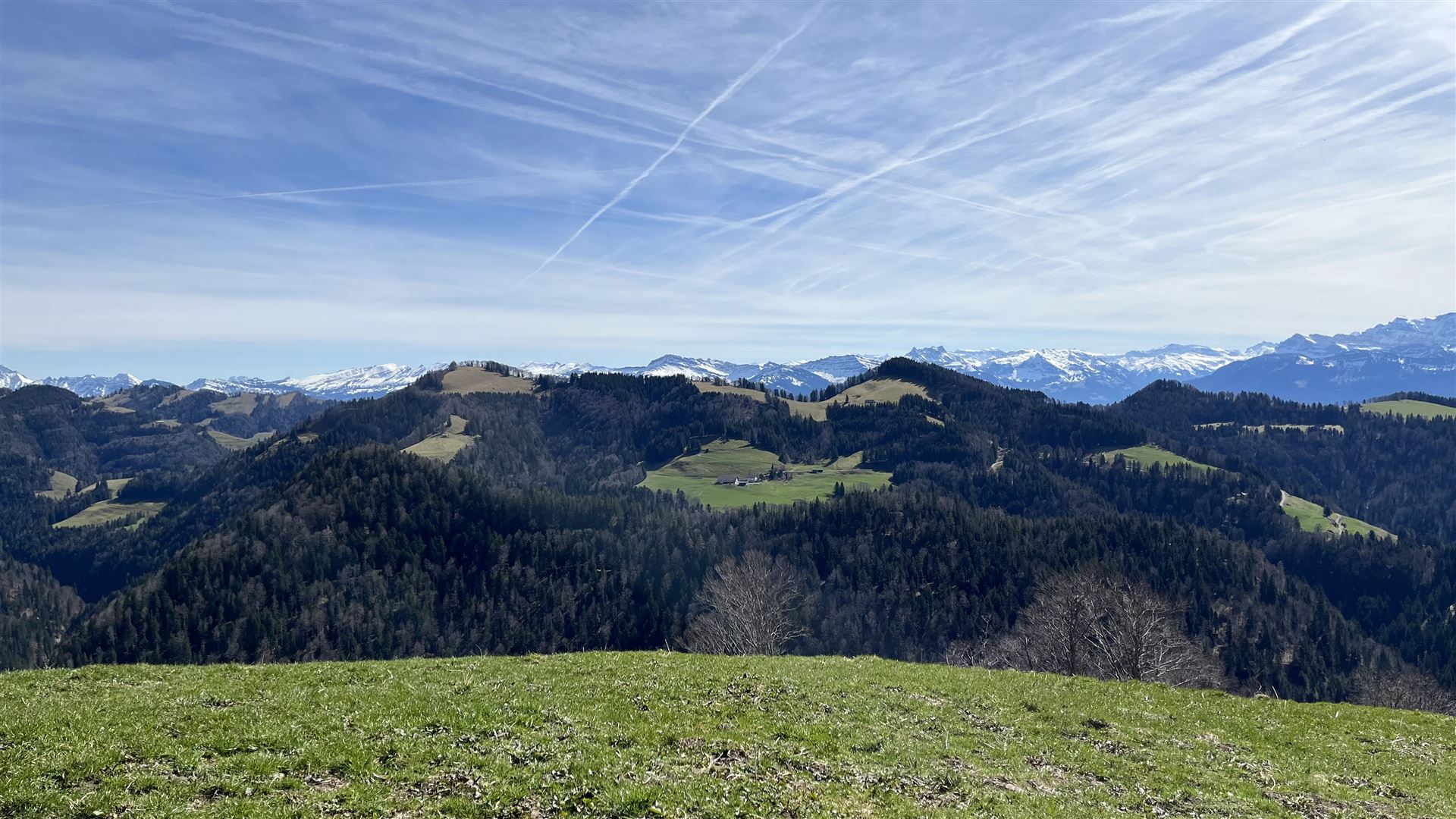 Auf dem baumfreien Hüttchopf hat man eine herrliche Aussicht in alle Richtungen.