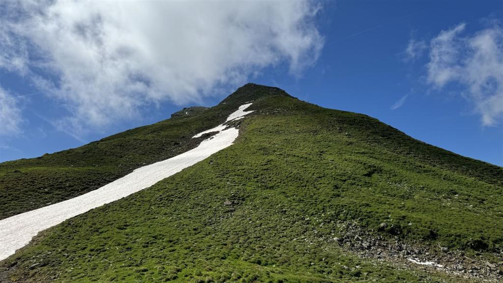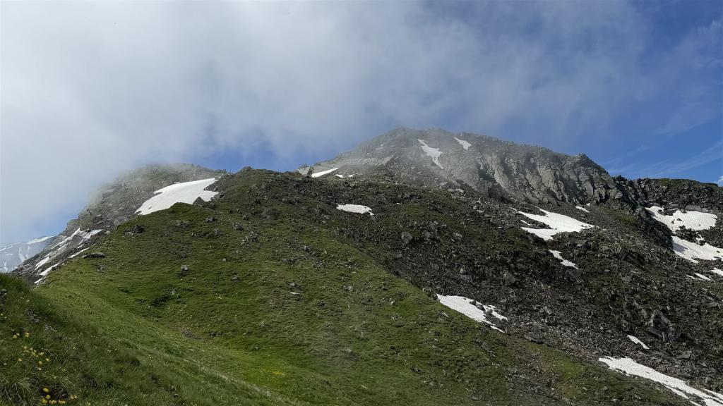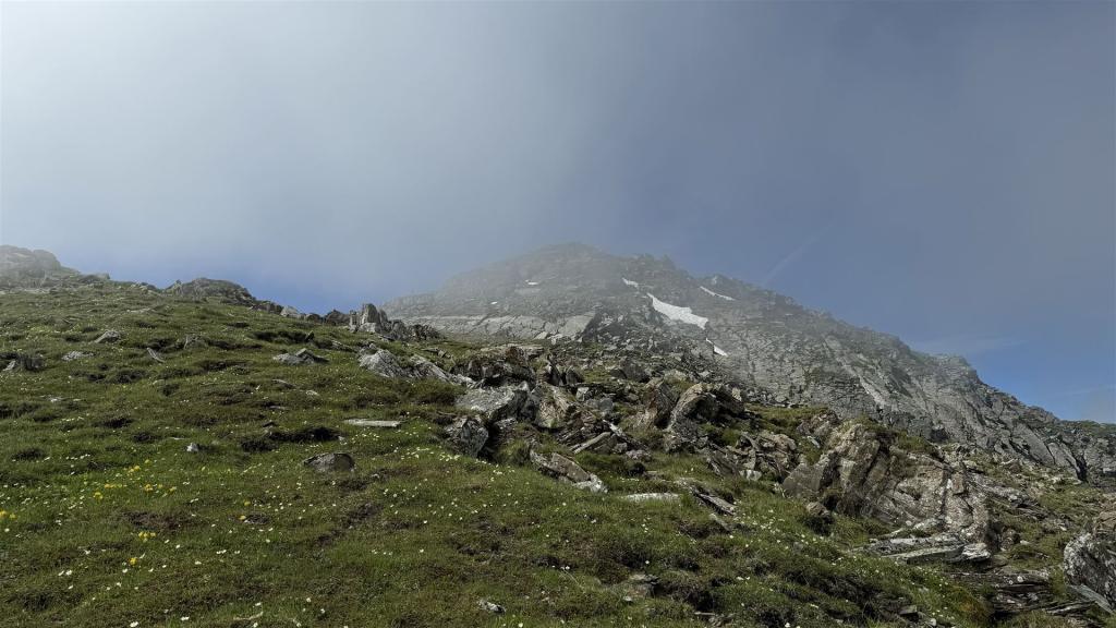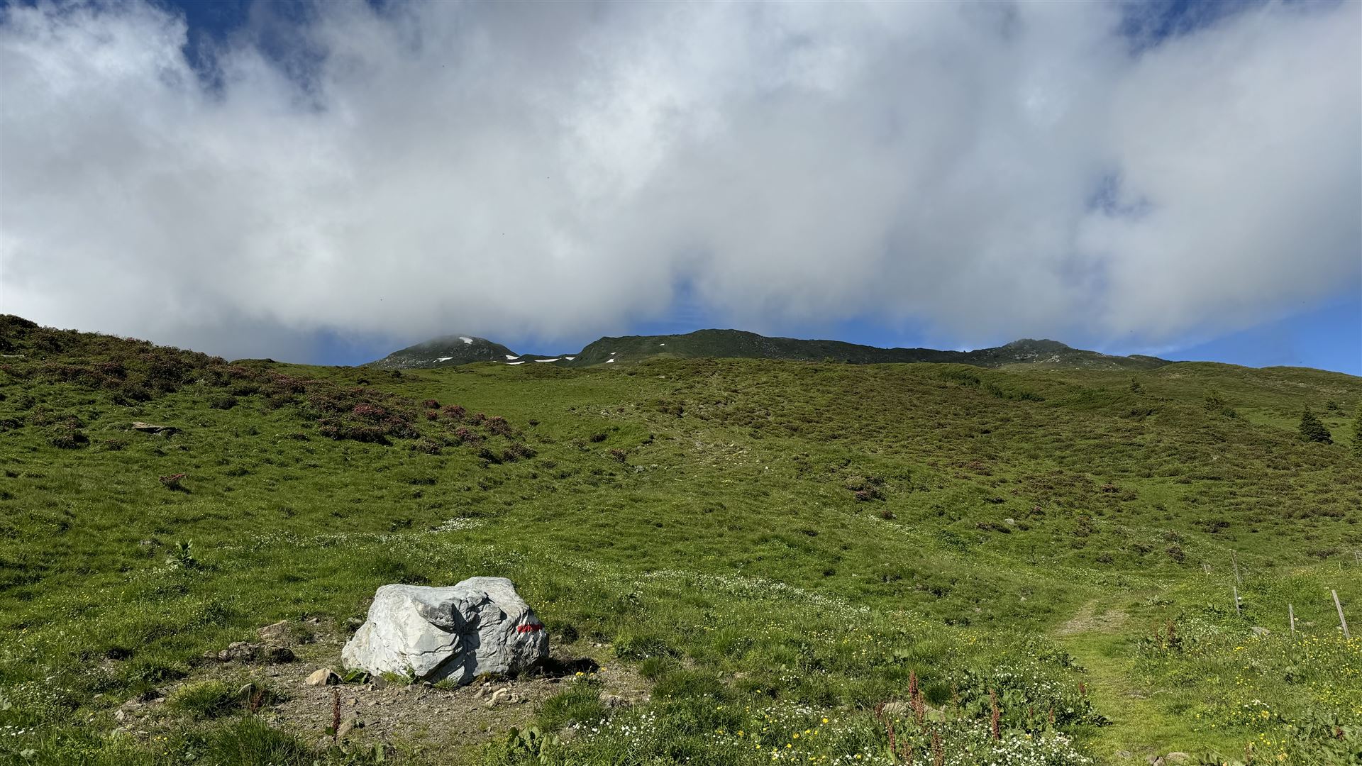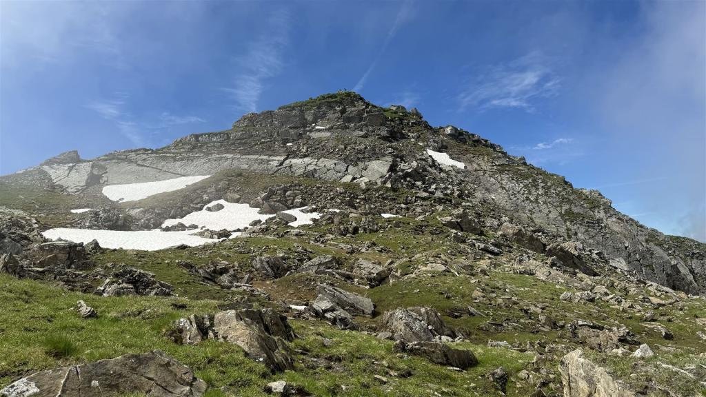 Der 3. Teil mit Aufstieg auf den Chistenstein war auf Wiesen, wobei nach oben das Gestein zunahm. Die vorhandenen Schneefelder konnte ich problemlos umgehen.