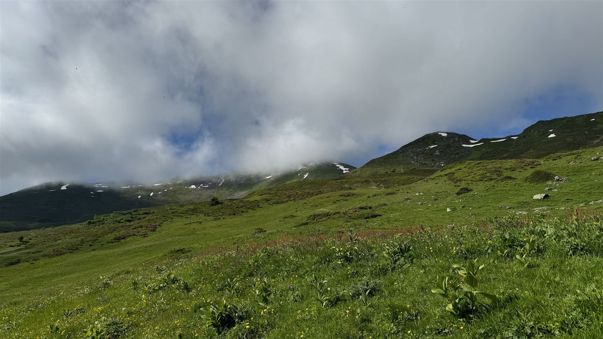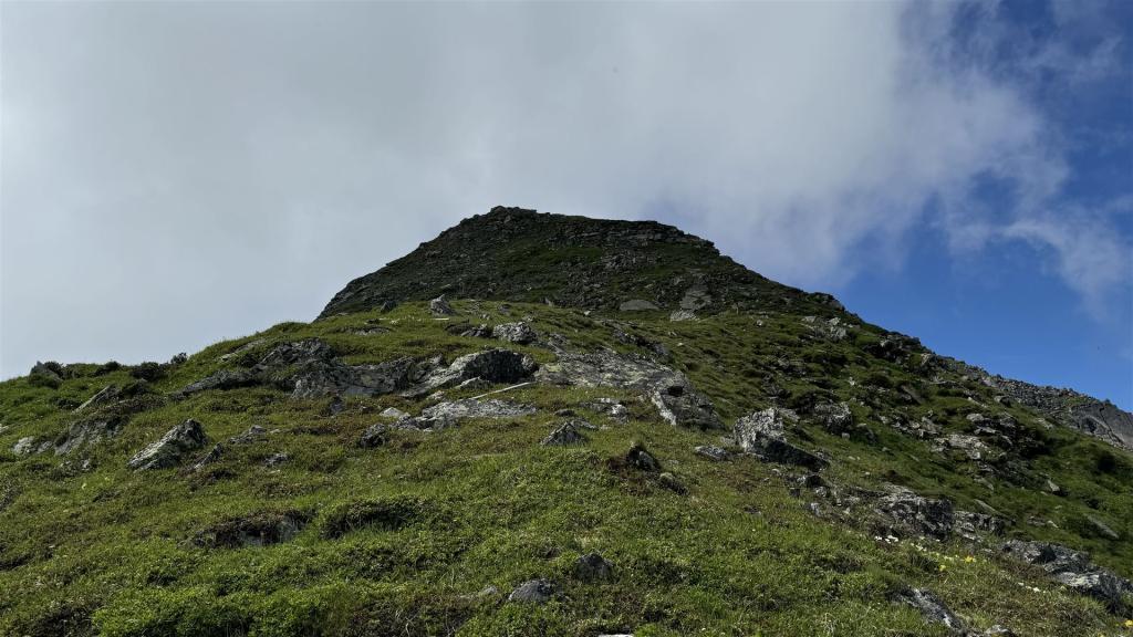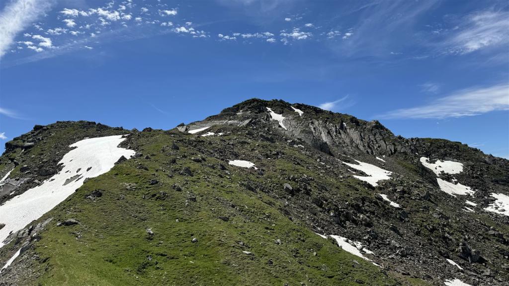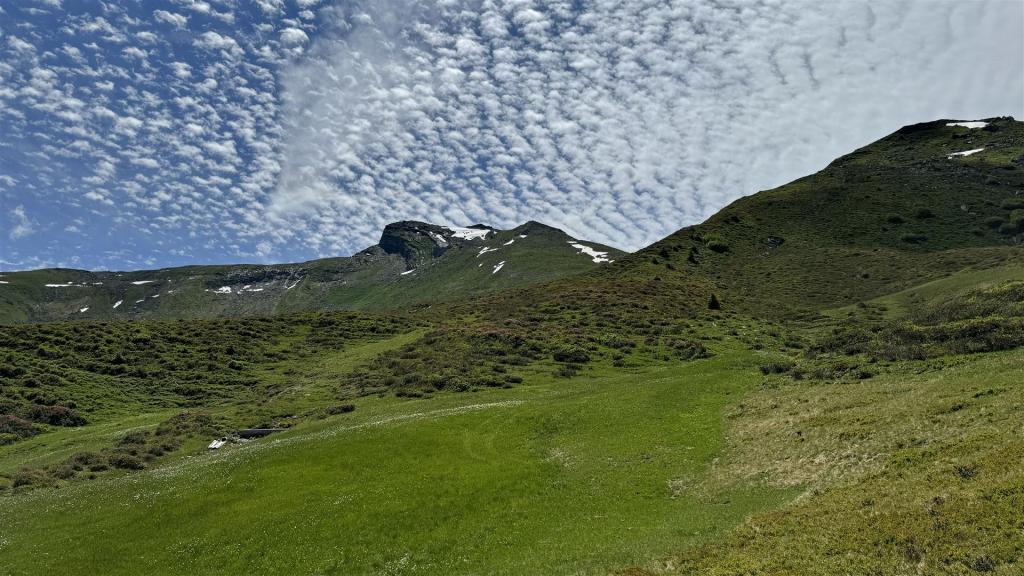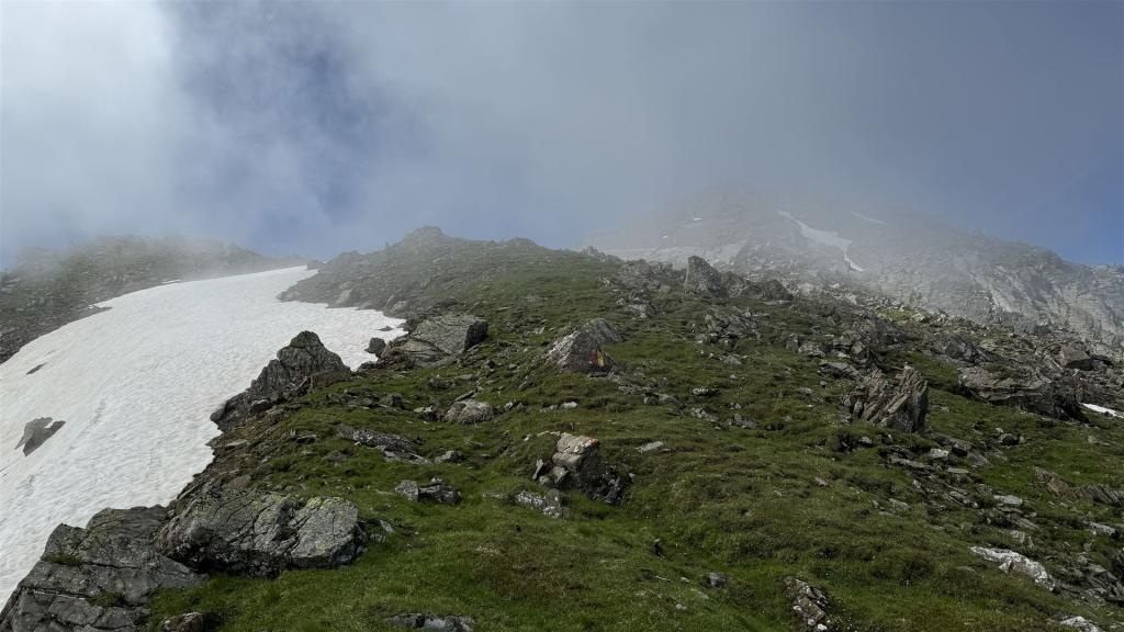 Der 3. Teil mit Aufstieg auf den Chistenstein war auf Wiesen, wobei nach oben das Gestein zunahm. Die vorhandenen Schneefelder konnte ich problemlos umgehen.