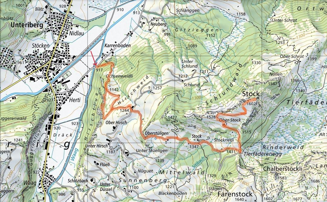 Unteriberg (917m) - Tierfäderenegg (1431m) - Stock (1602m) - Tierfäderenegg (1431m) - Unteriberg (917m)