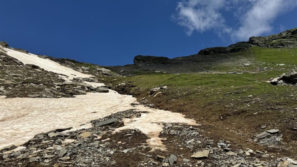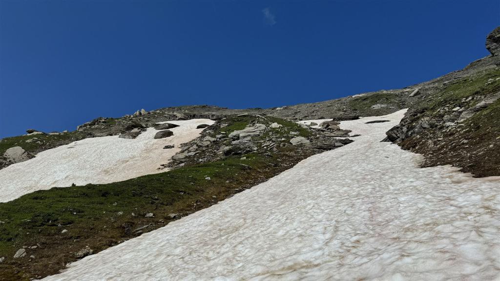 Es wird steiler, den Schneefeldern ausweichend