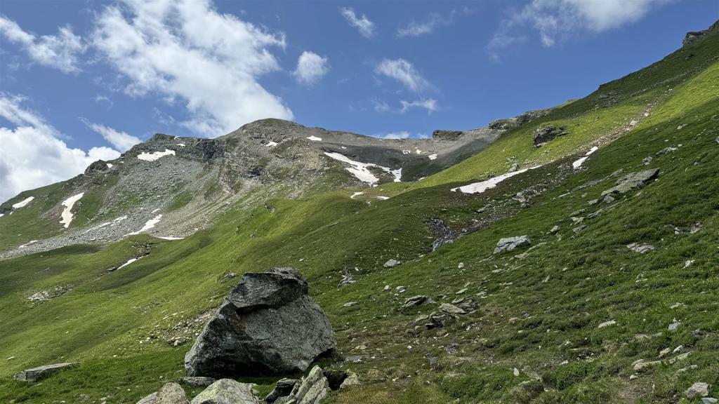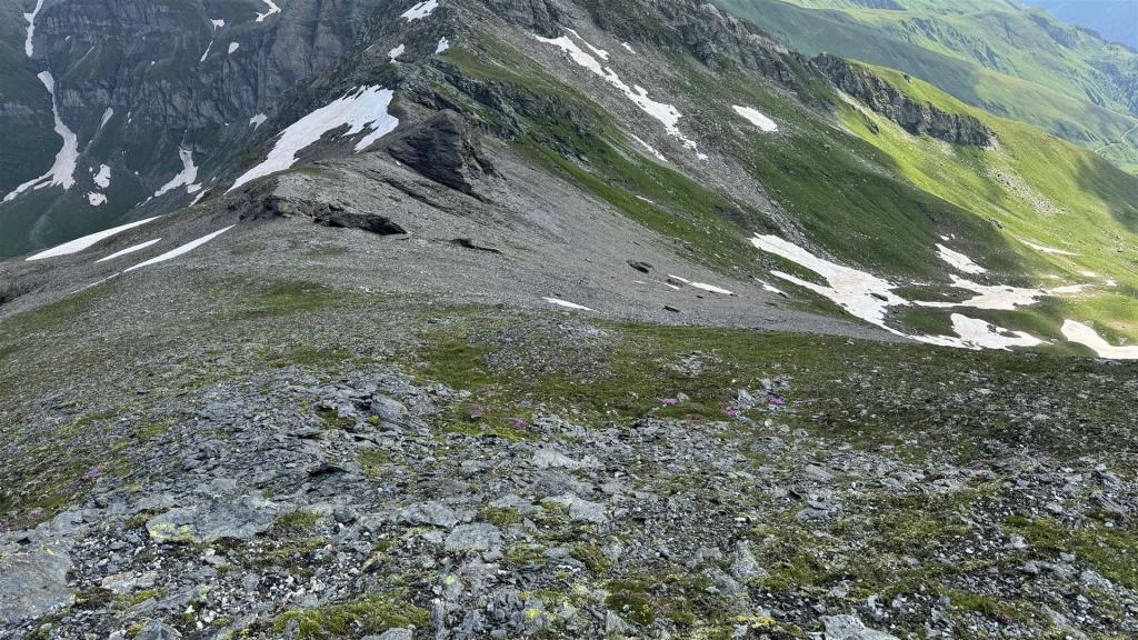 Unterhalb des Valserhorn suchte ich mir weglos die Route auf das Valserhorn, was mir ziemlich gut gelang.
