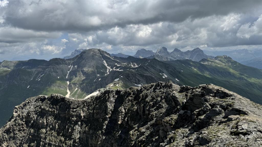 Auf dem Valserhorn sah ich so viele Berge, auf welchen ich bereits war und zusätzlich sah ich auch zu den Surettaseen hinüber, wo wir gerade 2 Tage vorher waren.