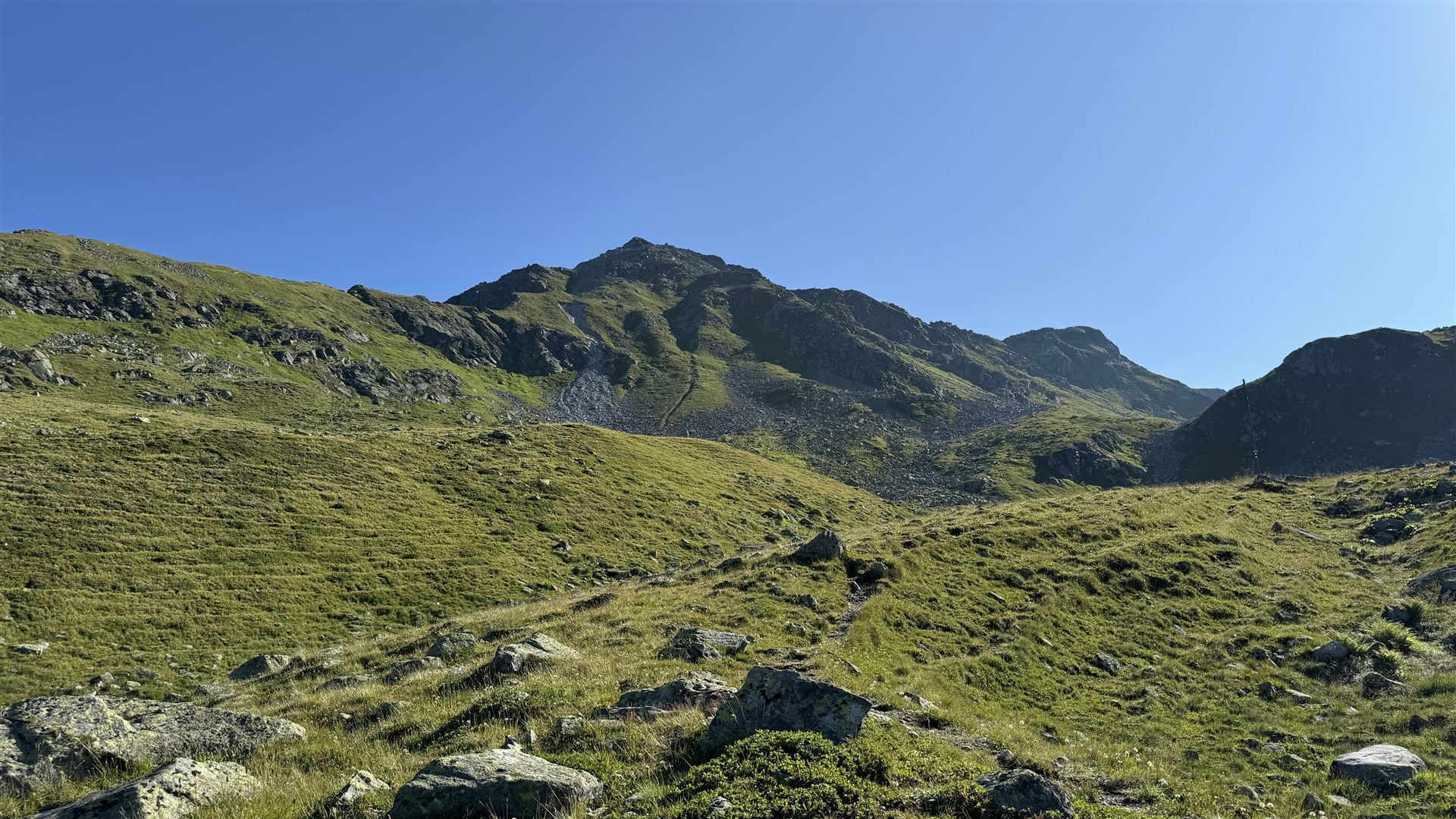 Beim Aufstieg von Sardasca bis ins Galtürtälli wurden im schattigen Morgen meine Hose, Schuhe und Socken komplett nass. Na, das trocknet später schon wieder.