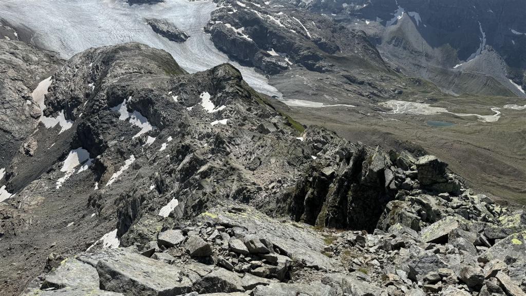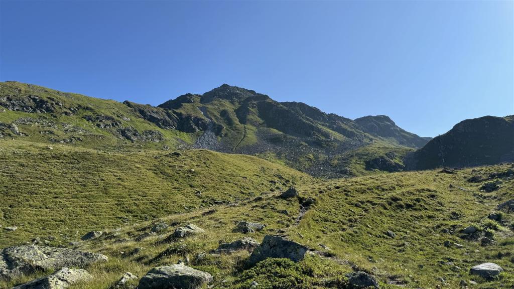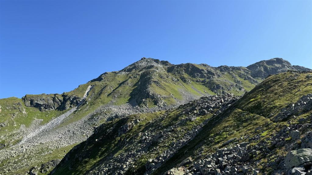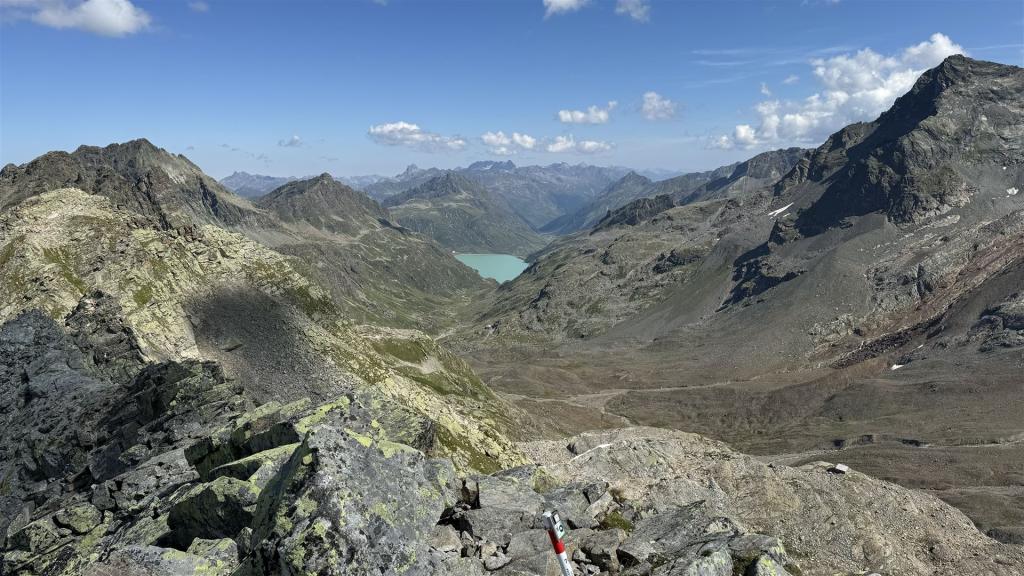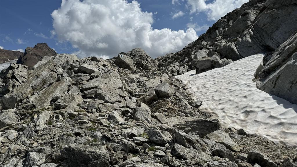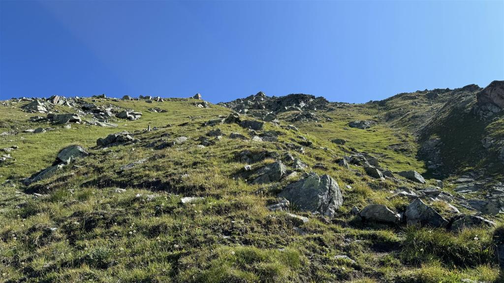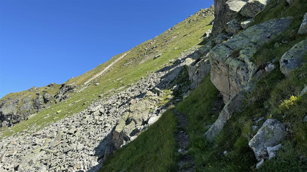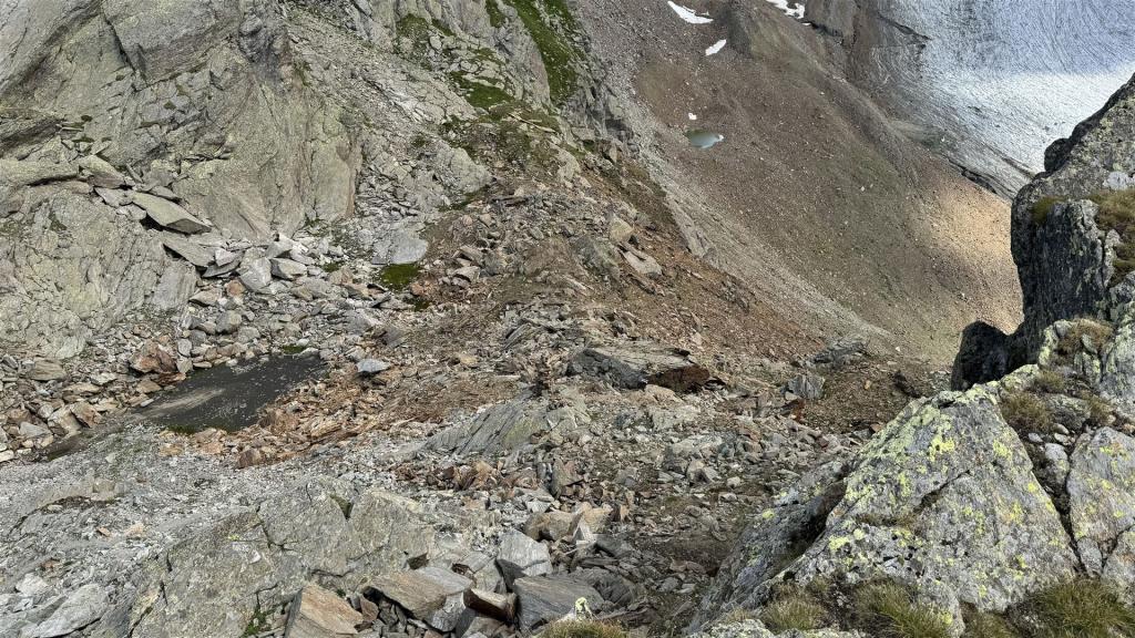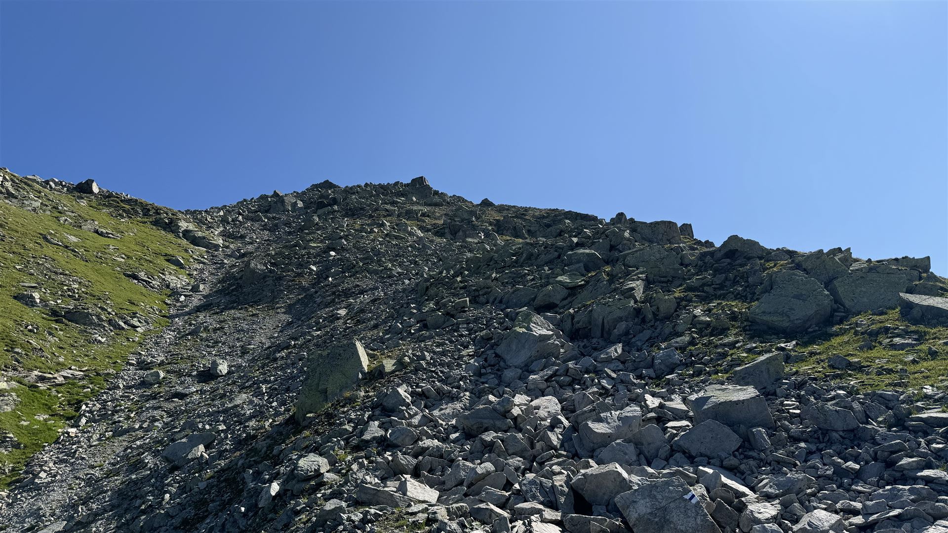 Der Abstieg vom Tällispitz mit der Route zur "Rote Furka" war im 1. steilen Teil schwierig, weil die Markierungen nicht genügend waren. Im steilen Blockgestein ohne Markierung war erst die 3 Route, die ich anschaute, eine akzeptablere Route. Danach wurde die Route nach und nach einfacher.